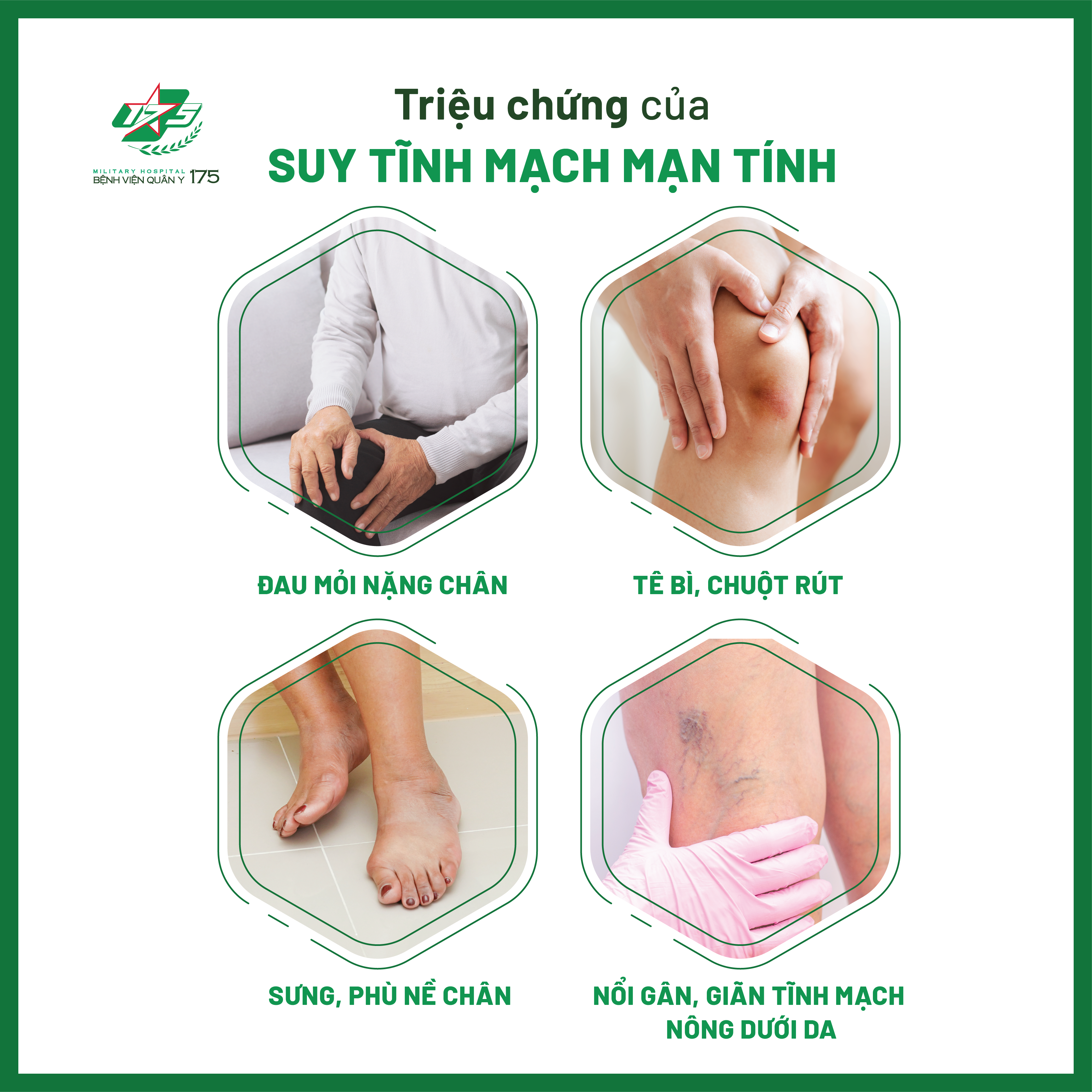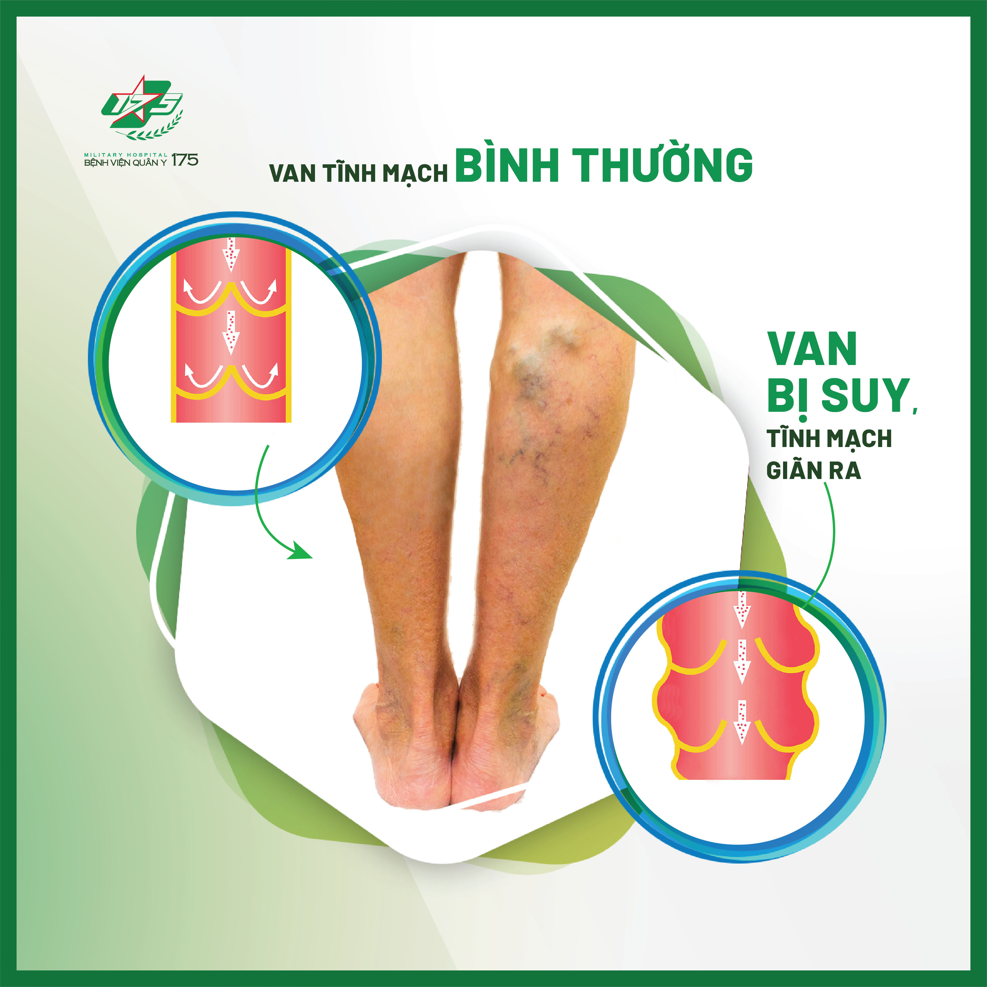 Tại Bệnh viện Quân y 175, điều trị suy tĩnh mạch là điều trị đa mô thức, kết hợp nhiều phương pháp điều trị, và cá thể hoá từng bệnh nhân để đạt được hiệu quả tối ưu, bao gồm cả điều trị nội và ngoại khoa.