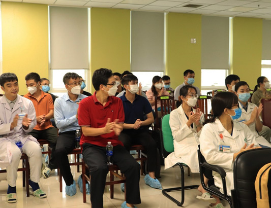Các bác sĩ tham gia chương trình theo dõi phẫu thuật qua hình thức trực tiếp và trực truyến