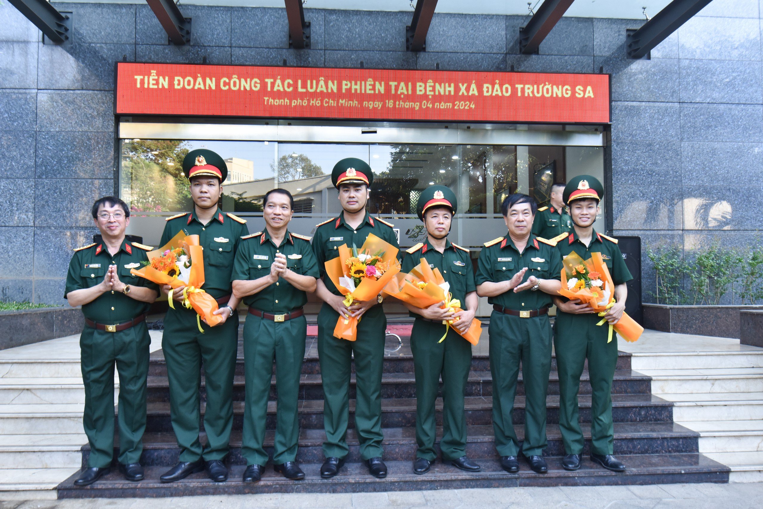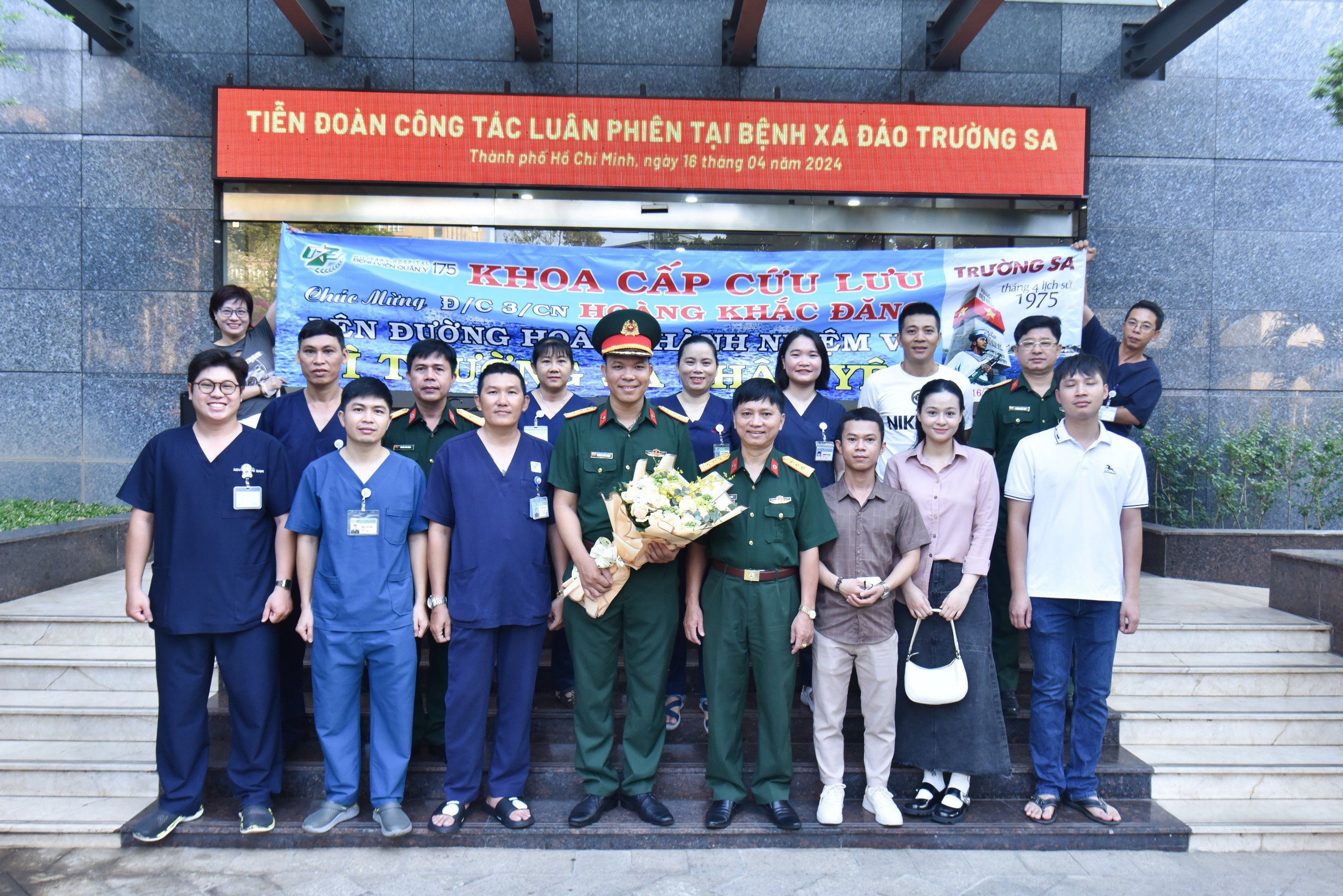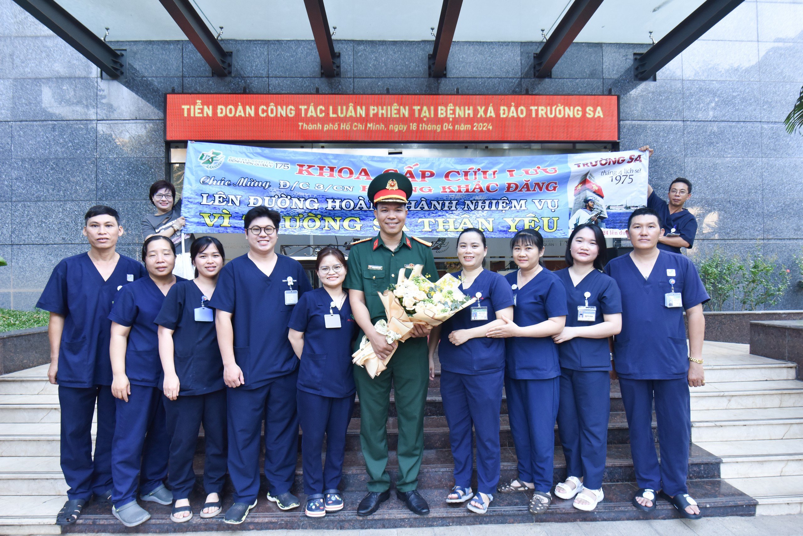 Đoàn công tác lần này đi luân phiên tại Bệnh xá đảo Trường Sa, huyện đảo Trường Sa gồm 1 bác sĩ, 3 điều dưỡng, tại các khoa của Bệnh viện Quân y 175. Phát biểu hứa quyết tâm trước lúc lên đường, Trung úy, bác sĩ Hoàng Anh Tuấn, Khoa Bệnh Nghề nghiệp thay mặt các y bác sỹ đã bày tỏ niềm vinh dự, tự hào được Ban giám đốc Bệnh tin tưởng giao nhiệm cho bản thân và các đồng đội được công tác tại huyện đảo Trường Sa. Đây là nhiệm vụ chính trị quan trọng, là cơ hội để các y, bác sĩ trẻ cống hiến, trưởng thành, góp phần vào giữ gìn chủ quyền biển đảo thiêng liêng của Tổ quốc. Đồng thời quyết tâm cao nhất, khắc phục mọi khó khăn, hoàn thành xuất sắc mọi nhiệm vụ được giao, trở thành điểm tựa vững chắc để bộ đội, nhân dân và ngư dân yên tâm bám biển, bám đảo.