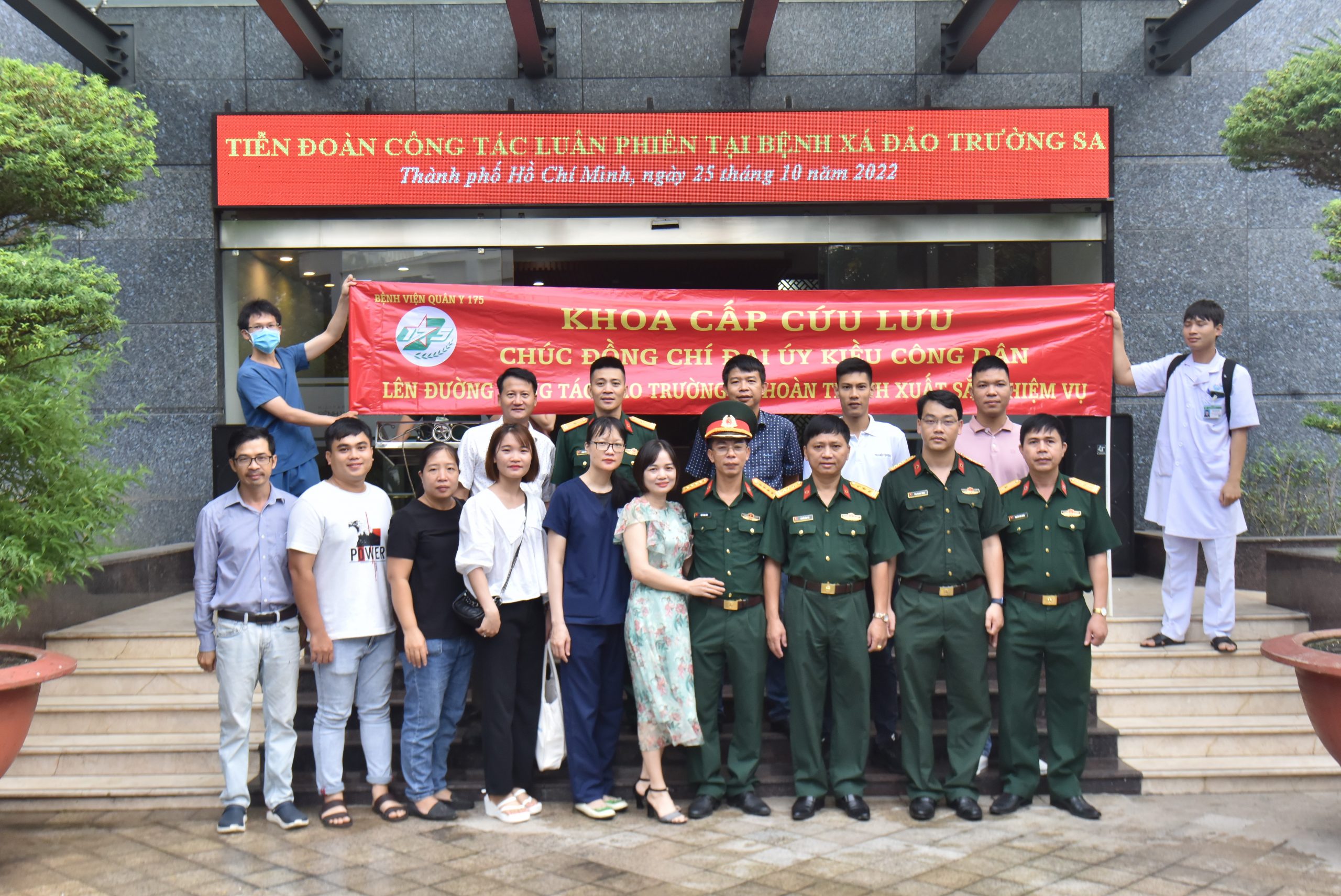 Đoàn công tác lần này đi luân phiên tại Bệnh xá đảo Trường Sa, huyện đảo Trường Sa gồm các bác sĩ, điều dưỡng trẻ tại các khoa của Bệnh viện Quân y 175. Thay mặt các y bác sĩ trẻ phát biểu hứa quyết tâm trước lúc lên đường, Thiếu tá, bác sĩ Dương Minh Chiến đã bày tỏ niềm vinh dự, tự hào khi bản thân và các đồng đội, đồng nghiệp được công tác tại huyện đảo Trường Sa. Các y bác sĩ sẽ phát huy trách nhiệm cao nhất, vượt mọi khó khăn, không ngừng thi đua rèn đức, luyện tài, nâng cao về chuyên môn về mọi mặt.