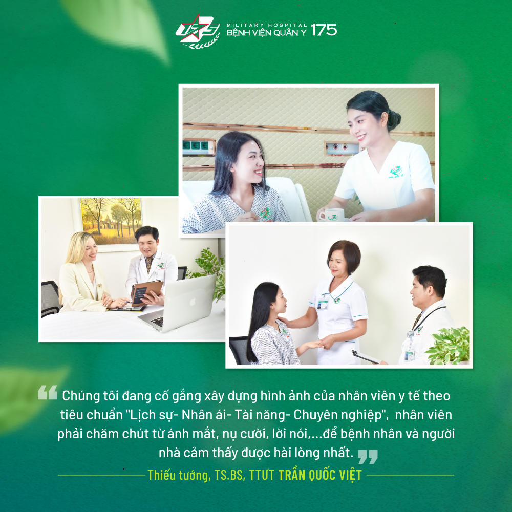 Tại Bệnh viện Quân y 175, để nâng cao chất lượng khám chữa bệnh một cách đồng đều giữa công tác chuyên môn và dịch vụ phục vụ, chúng tôi đã một mặt nâng cao trình độ chuyên môn y khoa của các chuyên ngành để thực hiện các dịch vụ điều trị chuyên sâu, nâng cao trình độ của các bác sĩ, điều dưỡng… Mặt khác chúng tôi cũng chú trọng việc nâng cao chất lượng phục vụ cho người bệnh và gia đình, đặc biệt, thái độ, tâm lý tiếp xúc, kỹ năng giao tiếp của nhân viên y bác sĩ đối với bệnh nhân và người nhà bệnh nhân.