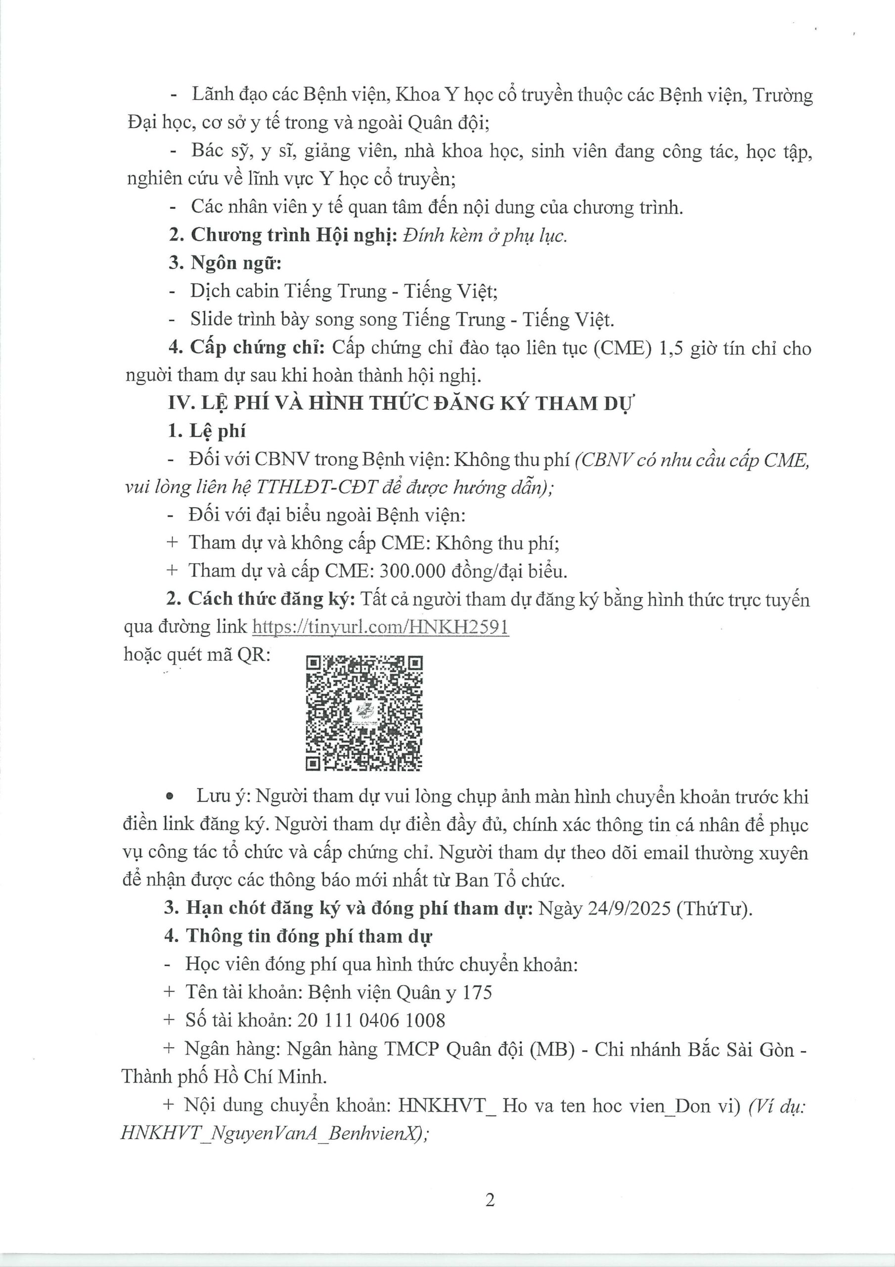 +  Tham dự và cấp CME: 300.000 đồng/đại biểu.