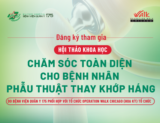 Nhằm đáp ứng nhu cầu học tập, đào tạo liên tục của cán bộ nhân viên y tế đang công tác tại Bệnh viện Quân y 175 và các cơ sở y tế trên phạm vi toàn quốc, đồng thời tăng cường cập nhật kiến thức, chia sẻ kinh nghiệm với các chuyên gia quốc tế trong chăm sóc toàn diện cho bệnh nhân trước, trong và sau phẫu thuật thay khớp háng và vai trò của điều dưỡng trong chăm sóc sức khoẻ hiện nay, Bệnh viện Quân y 175 thông báo tổ chức Hội thảo khoa học như sau: