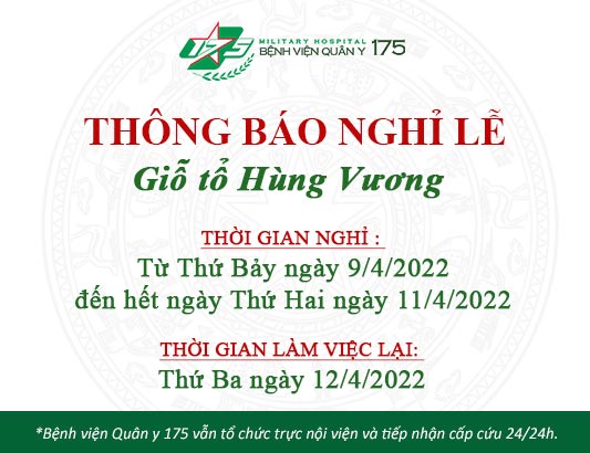 Bệnh viện Quân y 175 thông báo Lịch nghỉ Lễ Giỗ tổ Hùng Vương như sau:
