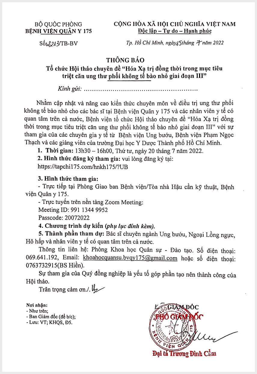 Hội thảo chuyên đề “Hóa Xạ trị đồng thời trong mục tiêu triệt căn ung thư phổi không tế bào nhỏ giai đoạn III” Trang chủ » Hội thảo chuyên đề “Hóa Xạ trị đồng thời trong mục tiêu triệt căn ung thư phổi không tế bào nhỏ giai đoạn III” 18/07/202218/07/2022 BVQY175