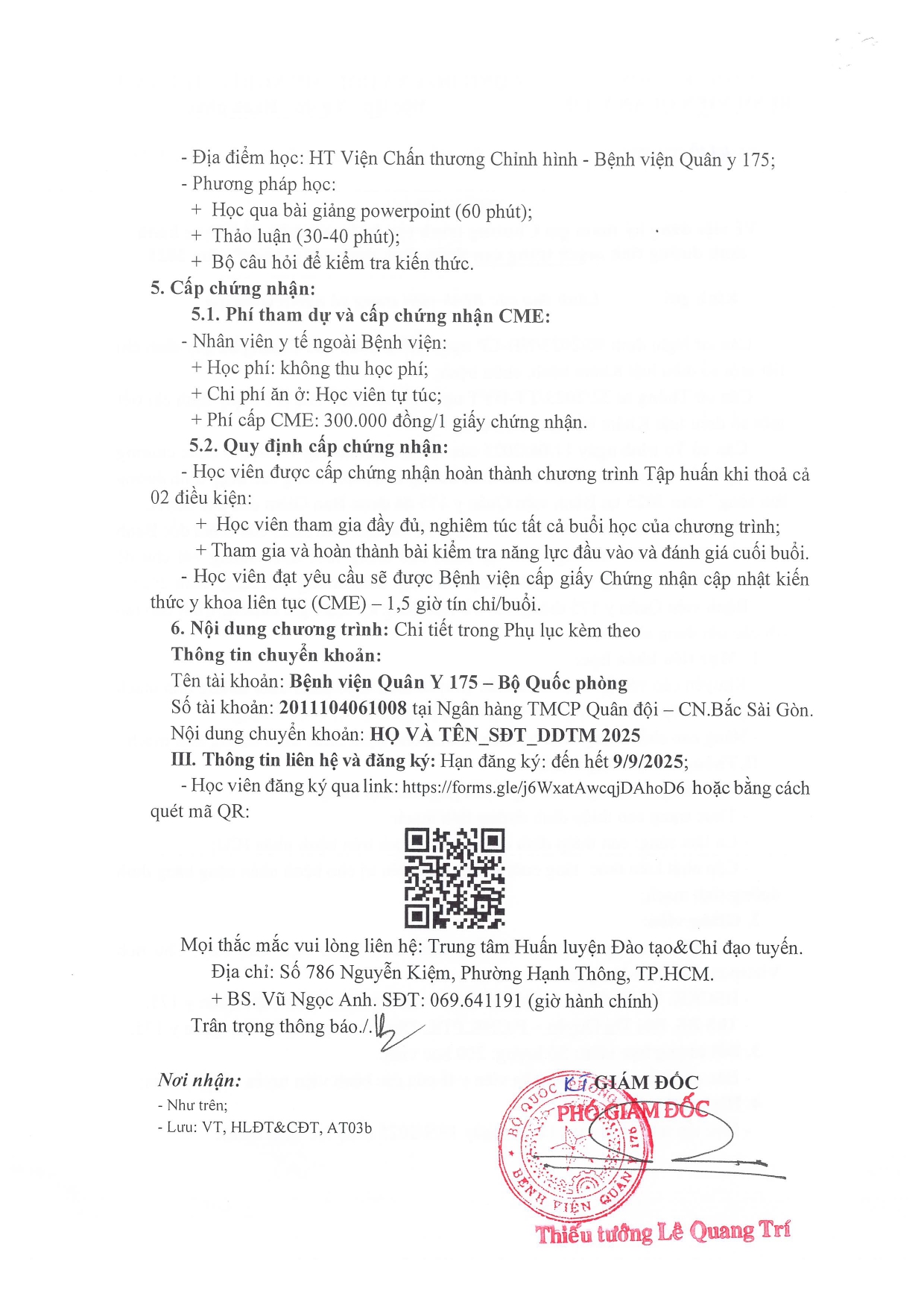 • Thông tin liên hệ và đăng ký: Hạn đăng ký: đến hết 9/9/2025;
