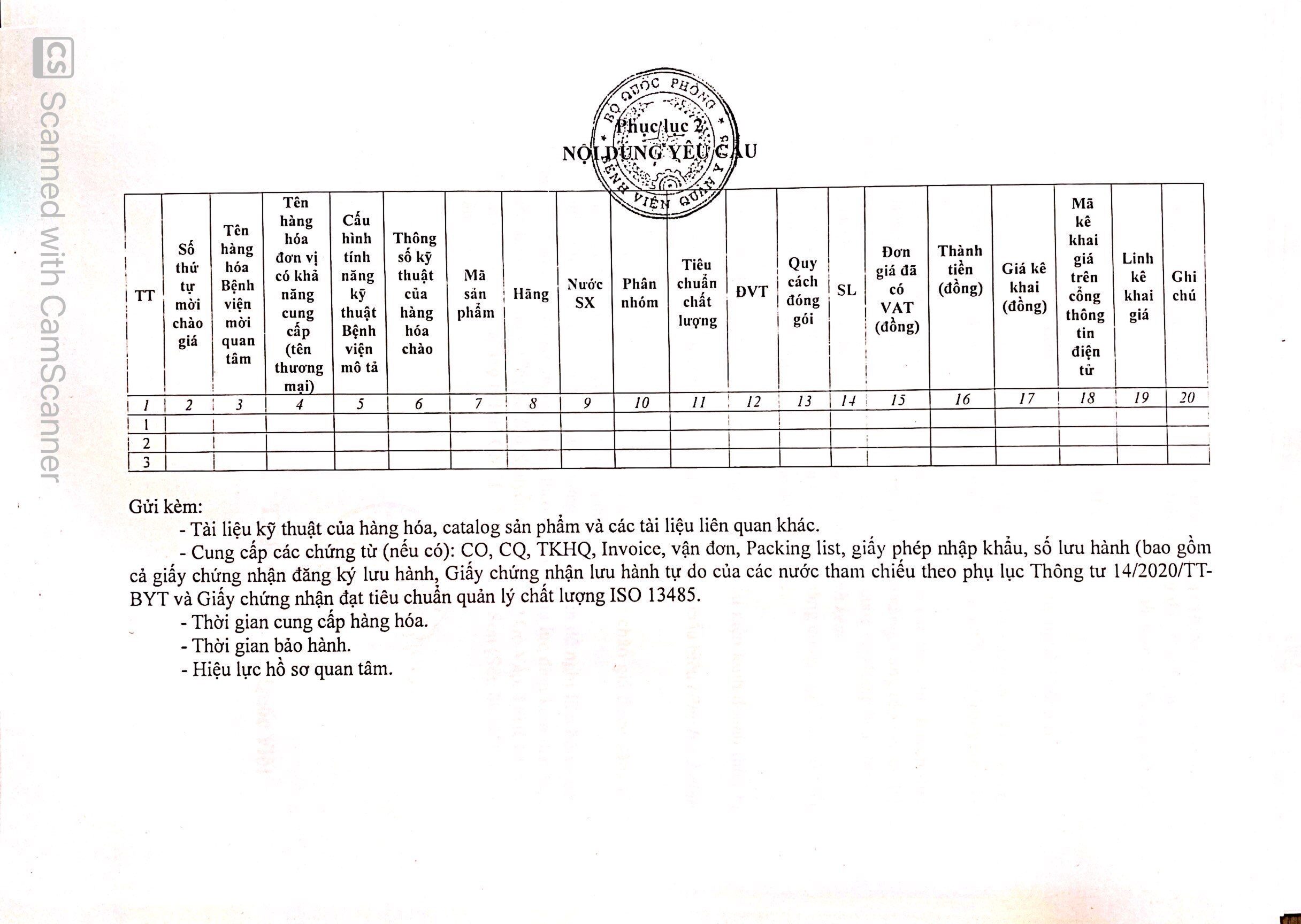 - Các tổ chức, đơn vị, cá nhân quan tâm, có khả năng cung cấp hàng hóa nêu trên báo giá và cung cấp thông tin theo mẫu tại phụ lục 2.