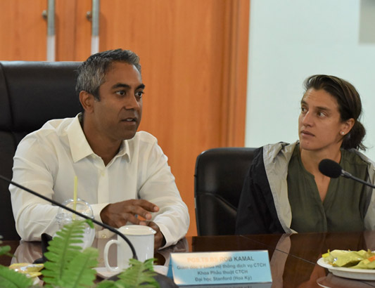 Trong chương trình làm việc, đoàn chuyên gia đã có buổi gặp gỡ trao đổi với Ban giám đốc Bệnh viện quân y 175. Hai bên đã có những trao đổi thẳng thắn về các dự án hợp tác nghiên cứu khoa học, phối hợp đào tạo, chuyển giao kỹ thuật mới tiên tiến trong thời gian tới… Cụ thể, về phối hợp đào tạo, hai bên mong muốn đẩy mạnh mối quan hệ và trao đổi bác sĩ. Các bác sĩ BVQY 175 sẽ có cơ hội học tập, đào tạo sau đại học tại Đại học Stanford. Về nghiên cứu khoa học, hai bên mong muốn triển khai nhiều đề tài hơn nữa, không chỉ chuyên ngành chấn thương chỉnh hình mà còn nhiều chuyên ngành liên quan khác như chẩn đoán hình ảnh, gây mê hồi sức, y học thể thao và phục hồi chức năng…Cùng với đó, tổ chức thêm các hội nghị, hội thảo mời các chuyên gia Đại học Stanford làm báo cáo viên.