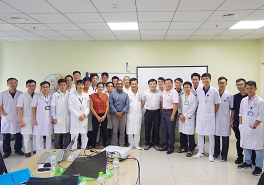 Trong chương trình làm việc tại BVQY 175, đoàn bác sĩ đại học Standford có các buổi tập huấn chuyên đề “ Cập nhật phẫu thuật các khớp chi trên” trong đó có những nội dung: cập nhật một số kiến thức mới chuyên ngành liên quan đến Phẫu thuật chi trên; cùng khám và thảo luận hướng điều trị cho những bệnh nhân có di chứng tổn thương phức tạp; trực tiếp phối hợp cùng đội ngũ bác sĩ BVQY175 phẫu thuật cho các ca bệnh khó . Ngoài ra, đoàn Đại học Standford còn có buổi thảo luận về dự án nghiên cứu “Ứng dụng CNTT trong theo dõi vết thương bệnh nhân sau phẫu thuật Chấn thương Chỉnh hình”.