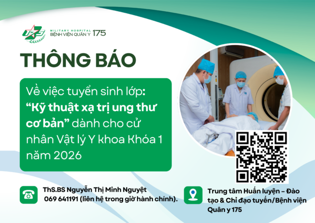 Nhằm đáp ứng nhu cầu học tập, bồi dưỡng kiến thức chuyên môn của cán bộ y tế đang công tác tại các Cơ sở y tế trên phạm vi toàn quốc, Bệnh viện Quân y 175 tổ chức chiêu sinh Khóa học “Kỹ thuật xạ trị ung thư cơ bản” dành cho cử nhân […]