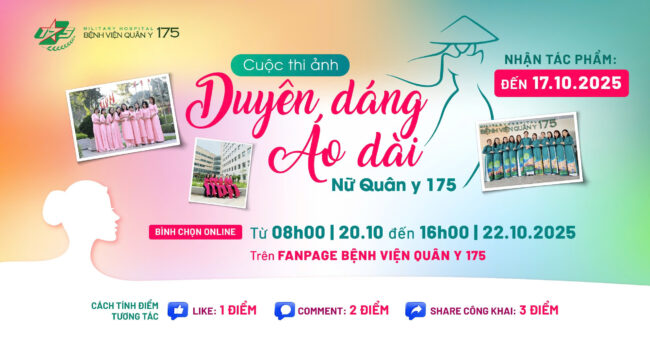 Nhằm hưởng ứng Kỷ niệm 95 năm Thành lập Hội Liên hiệp Phụ nữ Việt Nam (20/10/1930 – 20/10/2025) và Ngày Phụ nữ Việt Nam 20/10/2025, Bệnh viện Quân y 175 tổ chức cuộc thi ảnh đẹp “Duyên dáng Áo dài – Nữ quân y 175” THỂ LỆ CUỘC THI ẢNH ĐẸP “DUYÊN DÁNG ÁO […]