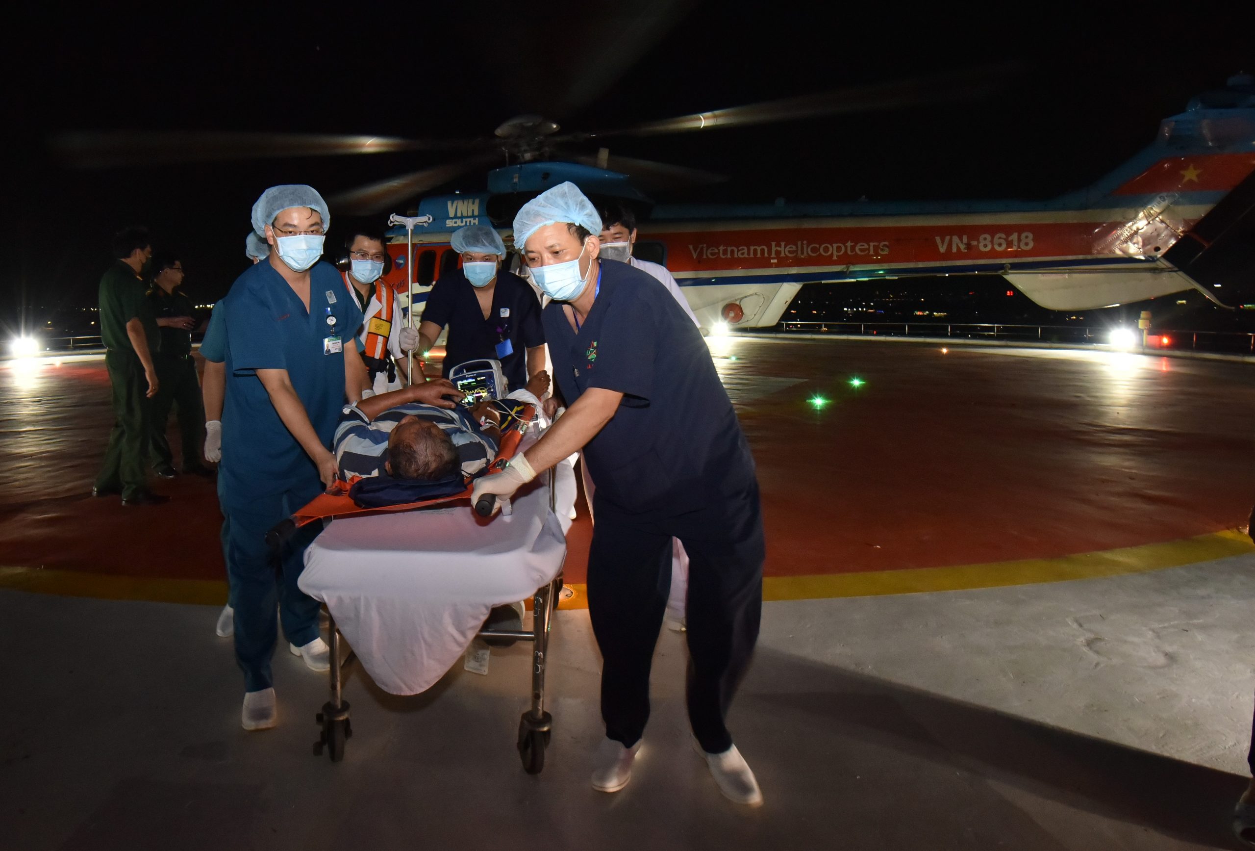 Chấp hành mệnh lệnh của Bộ trưởng Bộ Quốc phòng, Binh đoàn 18 đã điều động trực thăng EC 225 số hiệu VN 8618 với cơ trưởng Trung tá Nguyển Minh Tiến đã đón tổ cấp cứu đường không của Bệnh viện Quân y 175 do Đại úy Phạm Công Tình -Bác sỹ điều trị tại Khoa hồi sức tích cực làm tổ trưởng, xuất phát từ lúc 8 giờ ngày 15-10 tại sân bay Tân Sơn Nhất, bay đến đảo Nam Yết để đưa bệnh nhân về đất liền.