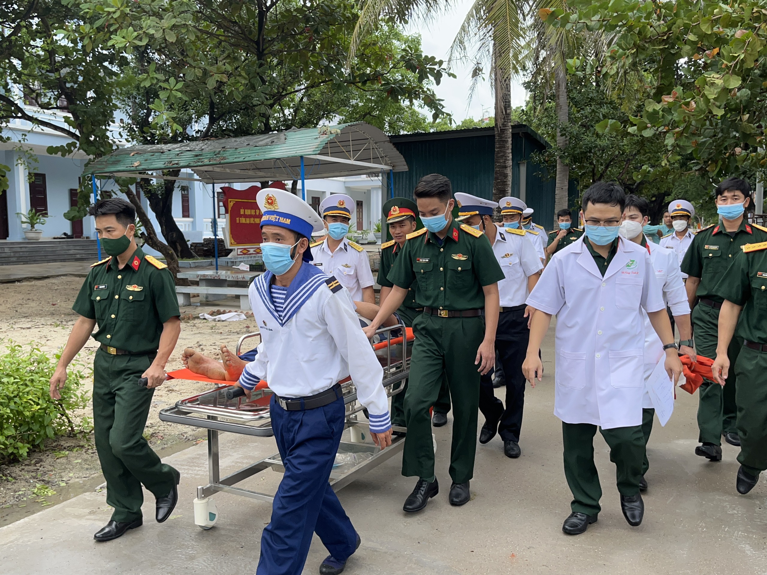 Bệnh nhân được chuyển đến bệnh xá đảo Nam Yết lúc 14 giờ 30 phút ngày 12-10 . Bệnh nhân được các bác sỹ xử lý ban đầu, cho bệnh nhân bất động, truyền dịch kiểm soát, theo dõi các chỉ số sinh hiệu của bệnh nhân đồng thời hội chẩn cấp cứu qua điện thoại với Bệnh viện Quân y 103 và Bệnh viện Quân y 175.