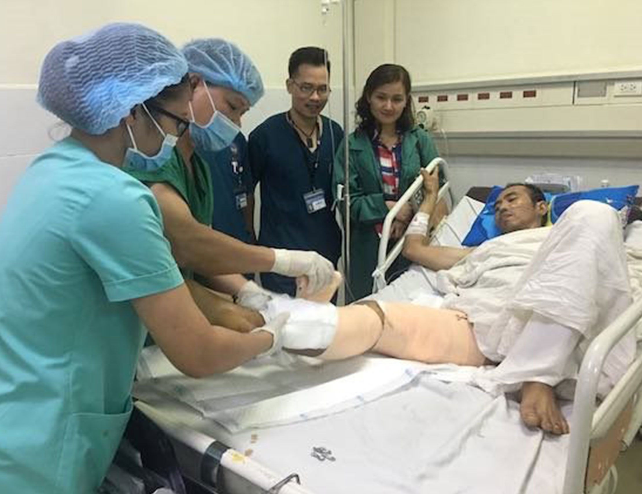 Bệnh nhân được mổ mạch để kiểm tra vùng chấn thương, xử lý vùng động mạch bị dập, tắc. Tuy nhiên, trong quá trình phẫu thuật, nhận thấy bệnh nhân bị tổn thương mạch máu rất phức tạp. Do không thể tái thông được mạch máu nên BV Quân Y 175 quyết định điều Tổ cấp cứu đường không khẩn cấp đưa bệnh nhân về đất liền ngay trong đêm Noel. Bệnh nhân về BV Quân Y 175 lúc 1h40 sáng ngày 26/12.
