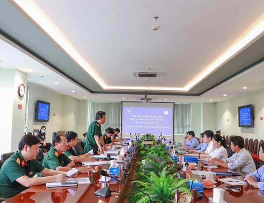 Sau đó, hai bên có buổi thảo luận về nội dung triển khai hợp tác trong thời gian sắp tới. Bệnh viện Quân y 175 phối hợp Đại học Y Dược Tp.HCM xây dựng chương trình đào tạo thực hành lâm sàng một số chuyên ngành trọng điểm: Chấn thương Chỉnh hình, Da liễu, Nội thần kinh, Sản phụ khoa, Nhi khoa….Đặc biệt, tập trung đào tạo sau đại học, đào tạo liên tục và thực hiện các đề tài nghiên cứu khoa học.