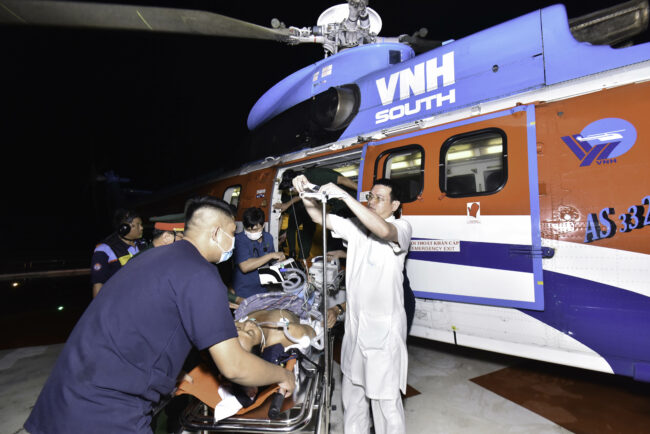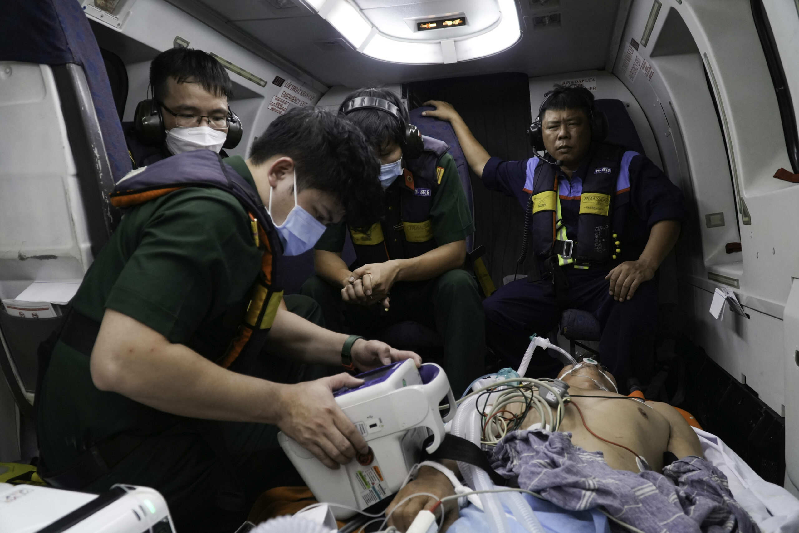Được lệnh của Bộ Quốc phòng, tối 29.6, Binh đoàn 18 nhanh chóng điều động máy bay trực thăng EC 225 mang số hiệu VN 8616 cùng tổ cấp cứu đường không Bệnh viện Quân y 175, do thiếu tá, bác sĩ Diệp Hồng Kháng – Khoa Hồi sức tích cực (A12.1) làm kíp trưởng, xuất phát tại sân bay Tân Sơn Nhất.