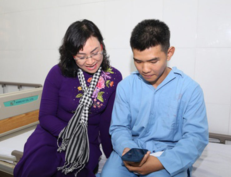 Phó chủ tịch UBND TP.HCM Phan Thị Thắng thăm hỏi, động viên chiến sĩ TP.HCM đang điều trị tại Trung tâm Y tế Trường Sa