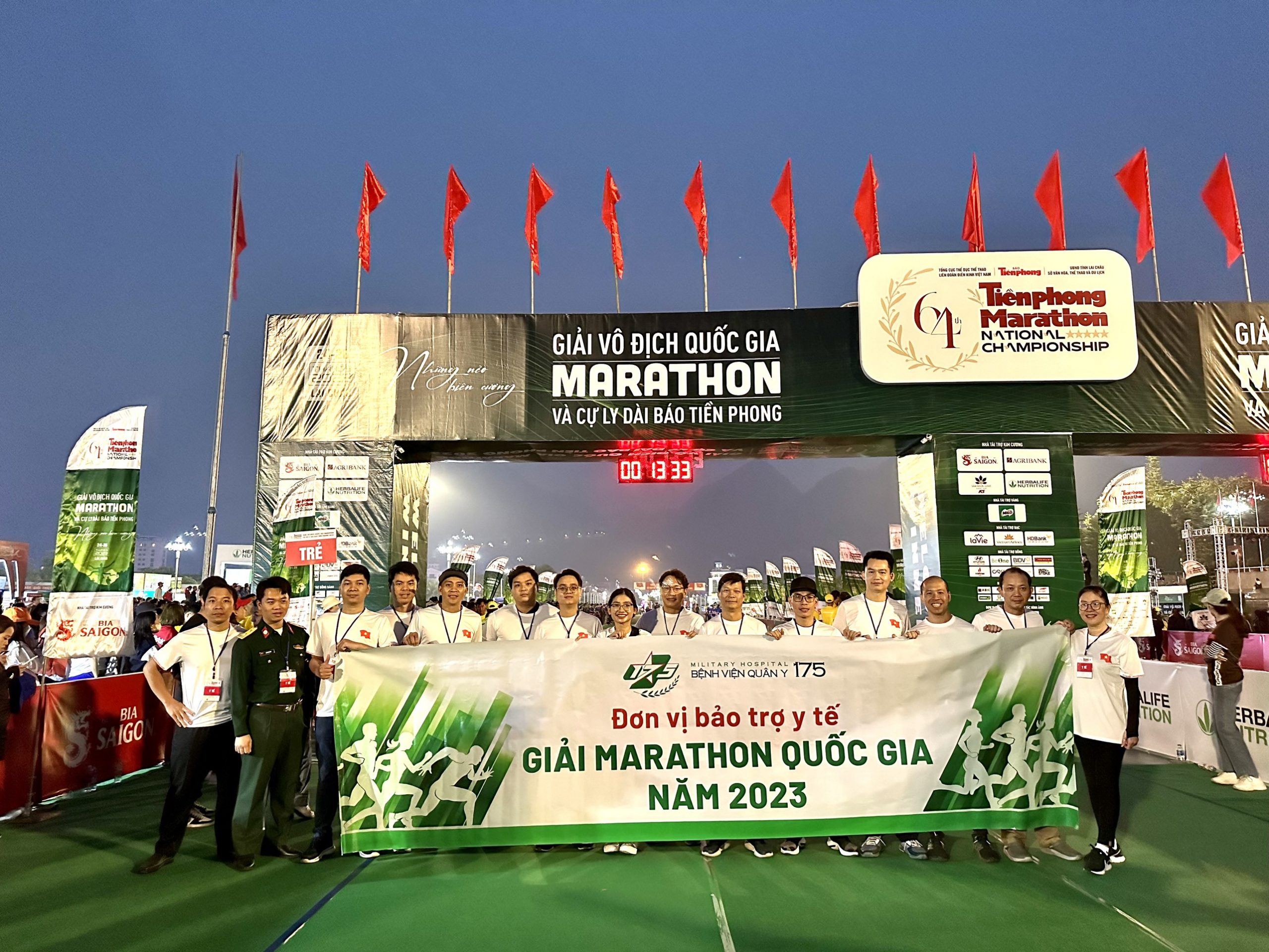 Ngày 26/03, đội ngũ y, bác sĩ Bệnh viện Quân y 175 tham gia hỗ trợ, đảm bảo chăm sóc y tế tối ưu cho các vận động viên Giải Vô địch quốc gia Marathon và cự ly dài báo Tiền Phong (Tiền Phong Marathon) lần thứ 64 – năm 2023, thu hút hơn 4.000 vận động viên tham gia. Với vai trò là đơn vị đảm bảo chăm sóc y tế cho giải chạy có quy mô hàng nghìn người, Bệnh viện Quân y 175 đã phối hợp nhiều đơn vị y tế: Quân y và dân y, đặc biệt là Sở Y tế Lai Châu, để lên các phương án chăm sóc, hỗ trợ tốt nhất cho vận động viên suốt thời gian diễn ra giải. Bên cạnh đó, Bệnh viện Quân y 175 còn tổ chức các buổi tập huấn về nghiệp vụ cho nhân viên y tế địa phương, sẵn sàng độc lập xử trí tại các chốt y tế. Với sự chủ động và chuyên nghiệp trong công tác chuẩn bị, Bệnh viện Quân y 175 đã giúp các vận động viên hồi phục nhanh chóng. Quá trình diễn ra giải không có trường hợp vận động viên nào phải chuyển về tuyến bệnh viện hoặc lưu lại điều trị.
