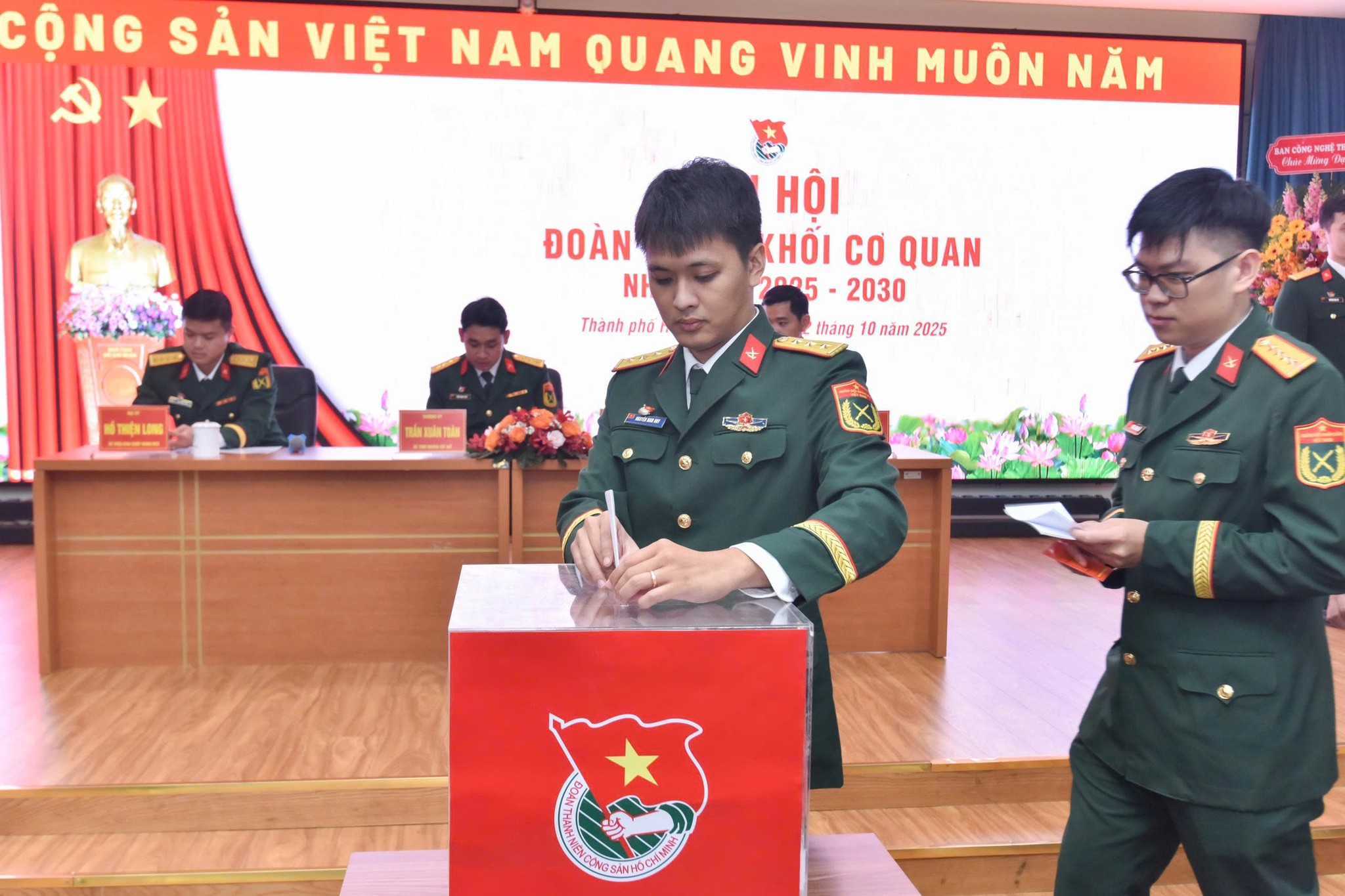 Chiều 2/10, Đoàn cơ sở Khối cơ quan Bệnh viện Quân y 175 (BVQY 175) đã khai mạc phiên chính thức Đại hội Đoàn cơ sở Khối Cơ quan nhiệm kỳ 2025-2030. Đại tá, TS. BS Nguyễn Việt Cường, Ủy viên Thường vụ Đảng ủy, Phó Giám đốc BVQY 175 dự và chỉ đạo Đại hội.
