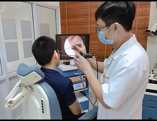 – Khám nội soi phát hiện ra khối ráy tai kèm nấm phát triển trong ống tai ngoài của bệnh nhân.