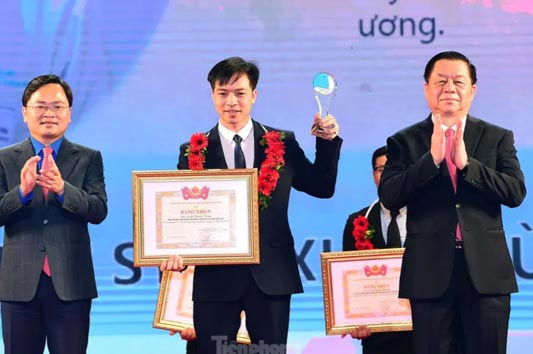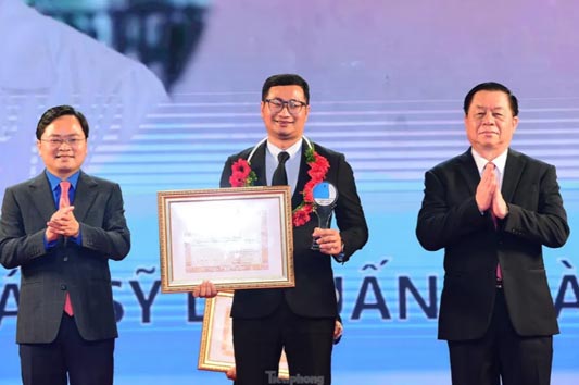 Thầy thuốc trẻ Lê Tuấn Thành, phụ trách mạng lưới thầy thuốc trẻ đồng hành nhận khen thưởng.