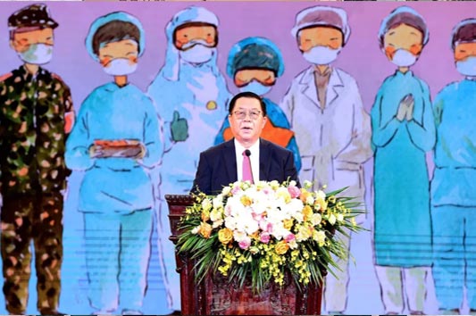 “Mỗi y bác sĩ tham gia phòng chống dịch là những bông hoa đẹp nhất, truyền cảm hứng về đức hy sinh, về trách nhiệm với đồng bào, truyền niềm tin, động lực cho các bệnh nhân và người nhà vượt lên nghịch cảnh, truyền năng lượng tích cực cho cả cộng đồng xã hội để đi qua những ngày khó khăn của dịch bệnh, bồi đắp thêm truyền thống tốt đẹp của dân tộc ta về tình đồng chí, nghĩa đồng bào”, ông Nghĩa nhấn mạnh.