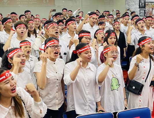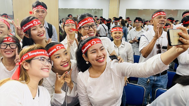 Các bạn trẻ sôi nổi tại ngày hội hiến máu.