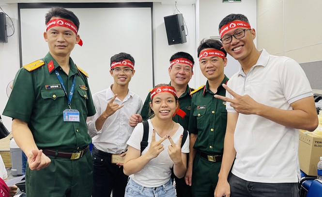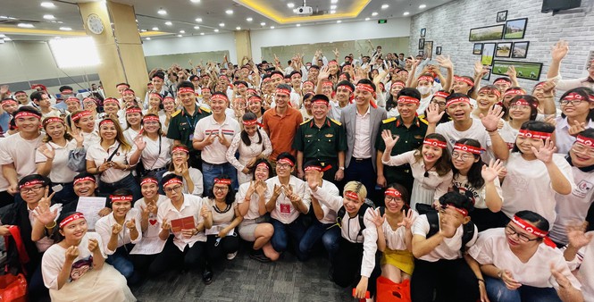 Các bạn trẻ cùng cán bộ chiến sĩ là bác sĩ của Bệnh viện Quân y 175 trong chương trình Chủ nhật Đỏ 2021 tại TPHCM.