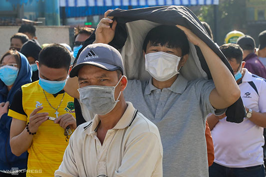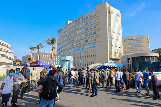 Từ sáng, thời tiết đã khá oi bức, dòng người vẫn đứng chờ đợi. Theo người dân, lý do họ dồn về bệnh viện này vì các cơ sở y tế khác trên địa bàn đều đã ngưng xét nghiệm theo nhu cầu, chỉ xử lý cho người đến điều trị, có triệu chứng bất thường. Một số nơi khác không lấy mẫu do lực lượng bác sĩ bận tham gia chống dịch.