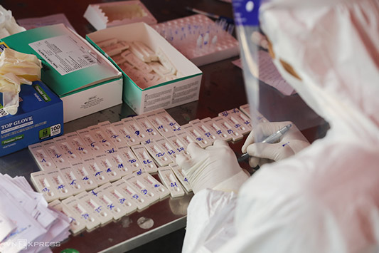 Những mẫu test nhanh được đánh số thứ tự trên bàn. Theo Bệnh viện Quân y 175, công suất một ngày có thể lấy khoảng 2.500 mẫu nhanh.