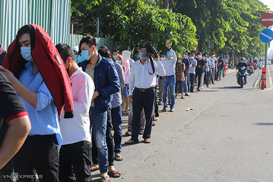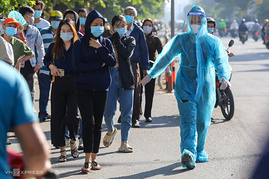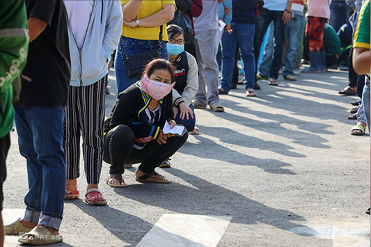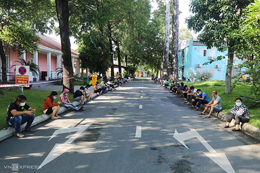 Dòng người xếp thành hàng dài trên vỉa hè và tràn ra cả lòng đường Nguyễn Thái Sơn, kéo dài khoảng 200 m tính từ cổng bệnh viện. Mọi người đều đeo khẩu trang, không chen lấn. Tuy nhiên do quá đông người khiến việc đảm bảo giãn cách nhiều thời điểm chưa đúng quy định 1,5 m của Bộ Y tế.