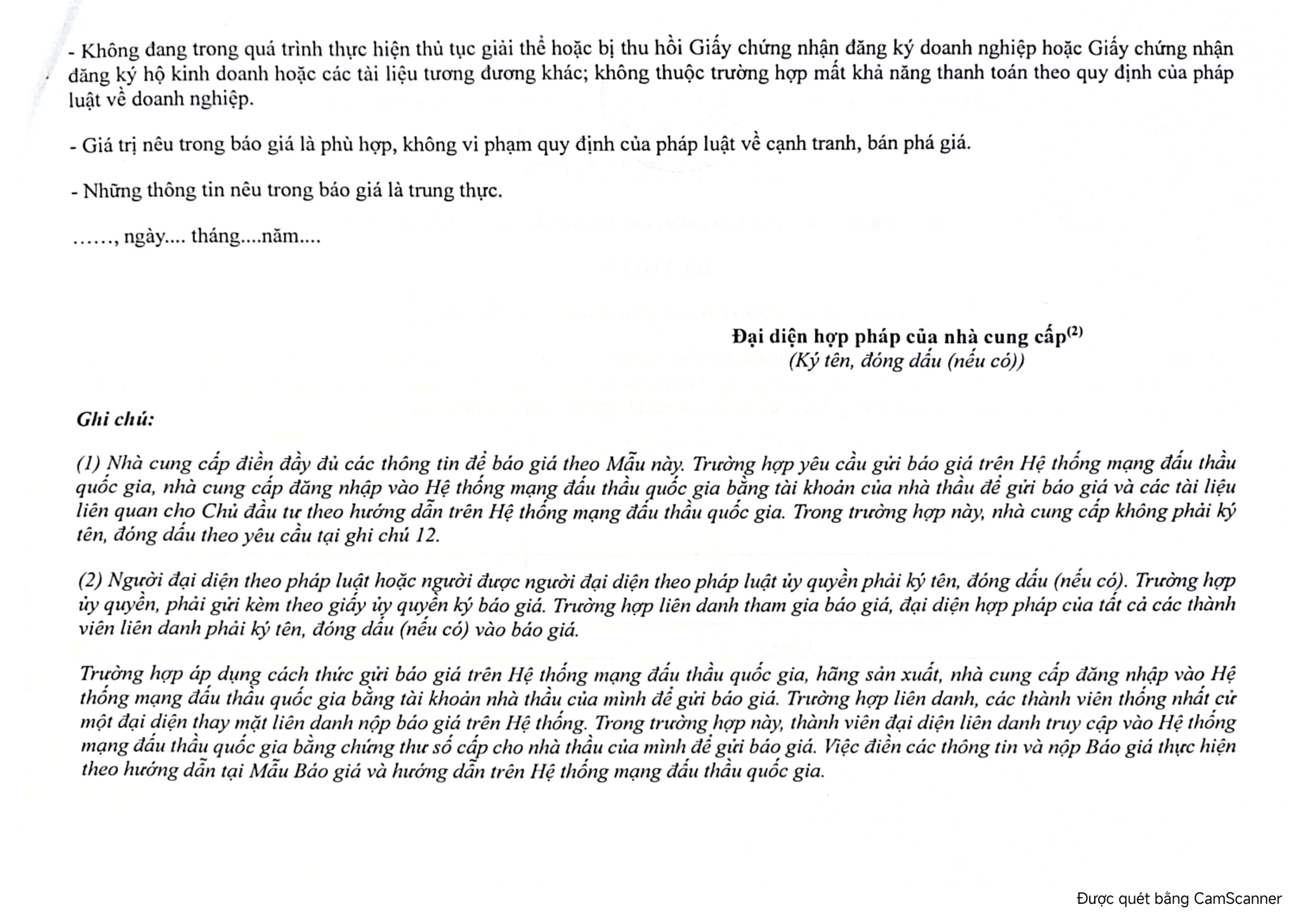 - Cách thức tiếp nhận báo giá: