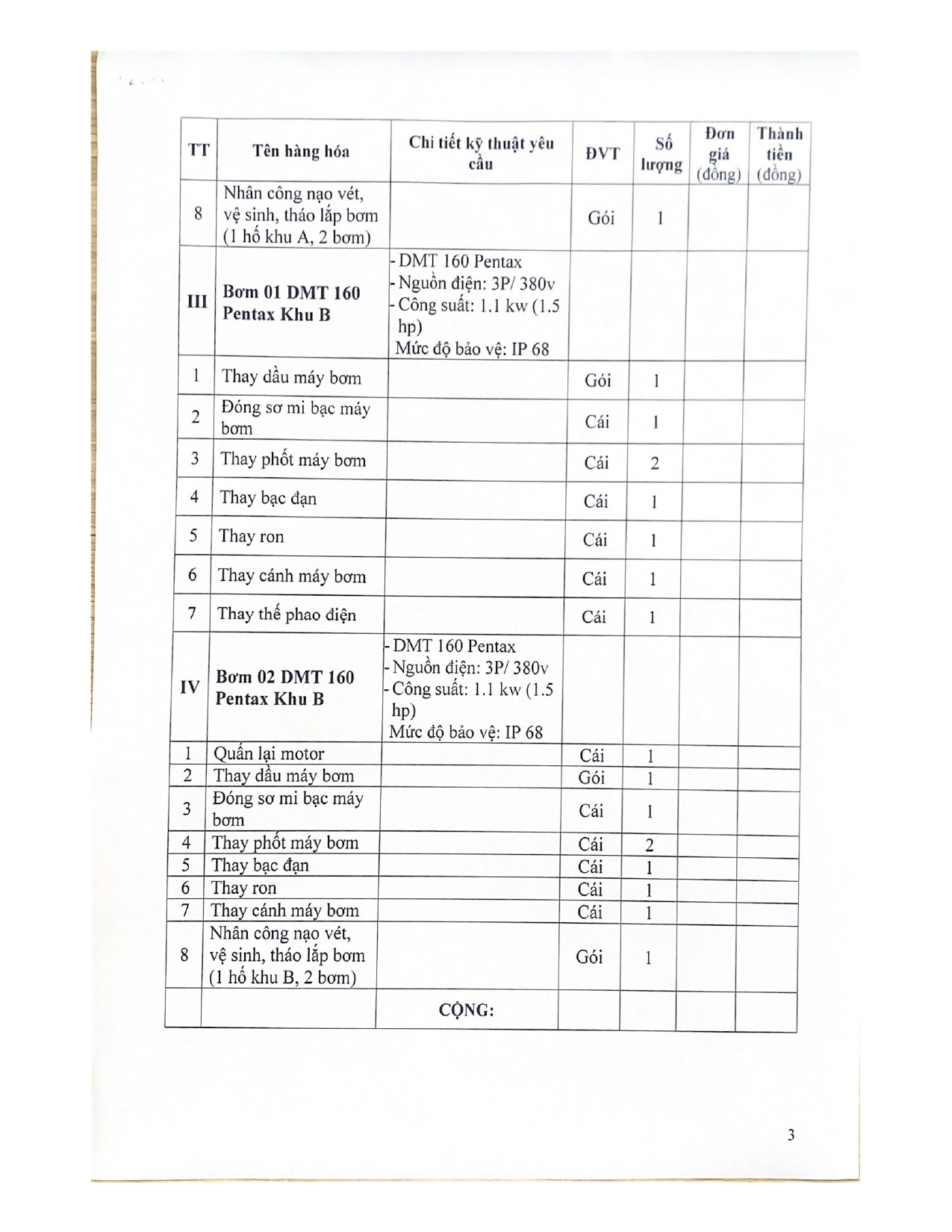 Yêu cầu báo giá cho gói thầu sửa chữa hệ thống Bơm thoát nước thải bể phốt trung chuyển tầng Pít tòa nhà Viện CTCH