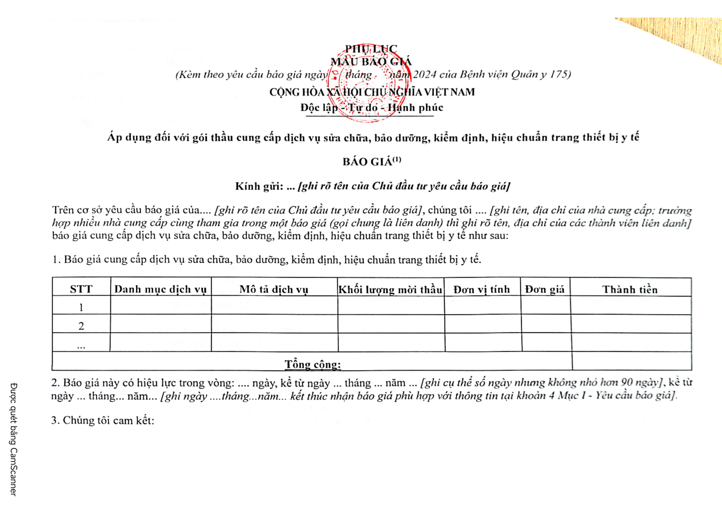– Nhận trực tiếp tại địa chỉ: Khoa Trang bị, Bệnh viện Quân y 175, 786 Nguyễn Kiệm, P.3, Q. Gò Vấp, TPHCM