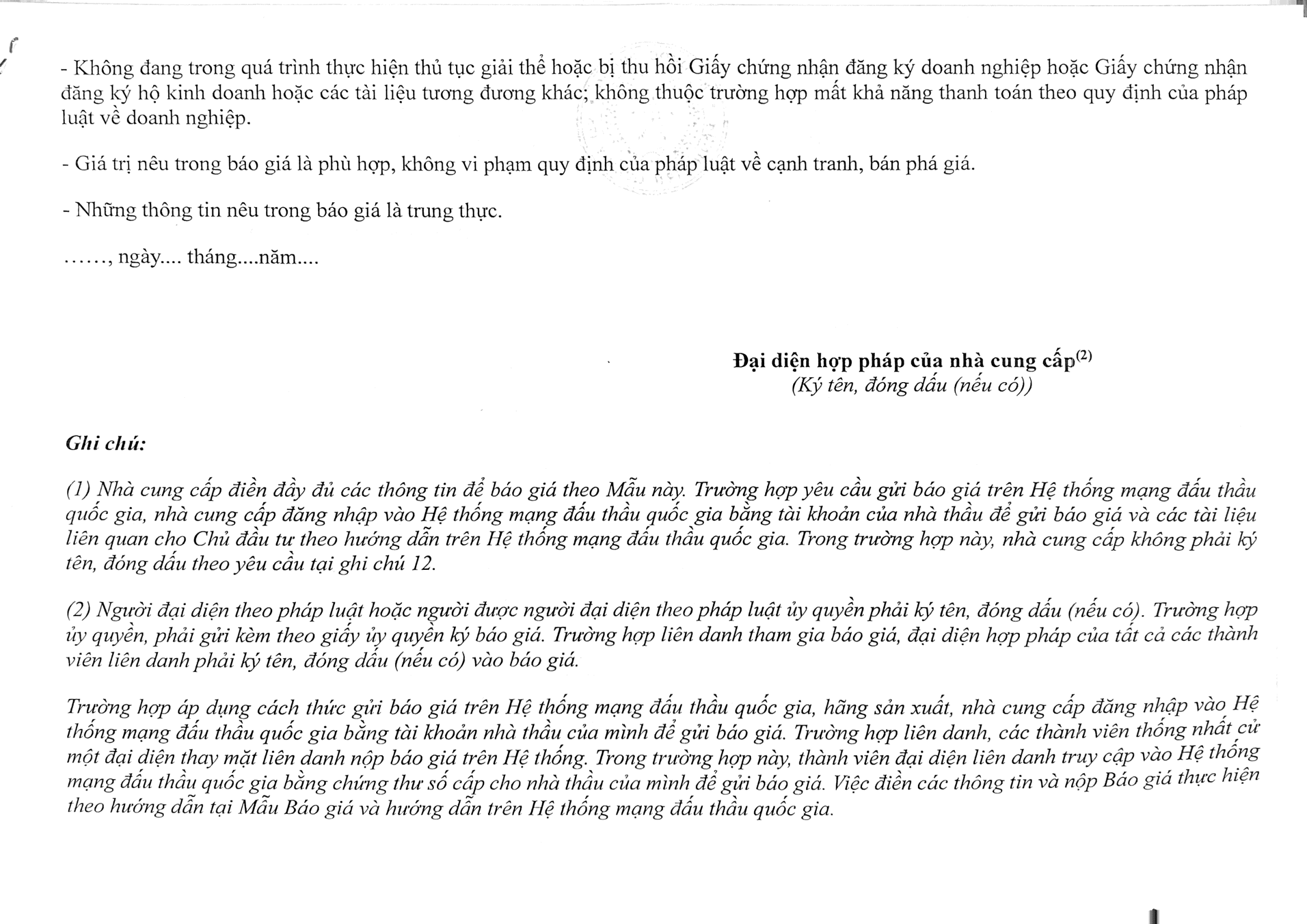 Các báo giá nhận được sau thời điểm nêu trên sẽ không được xem xét.