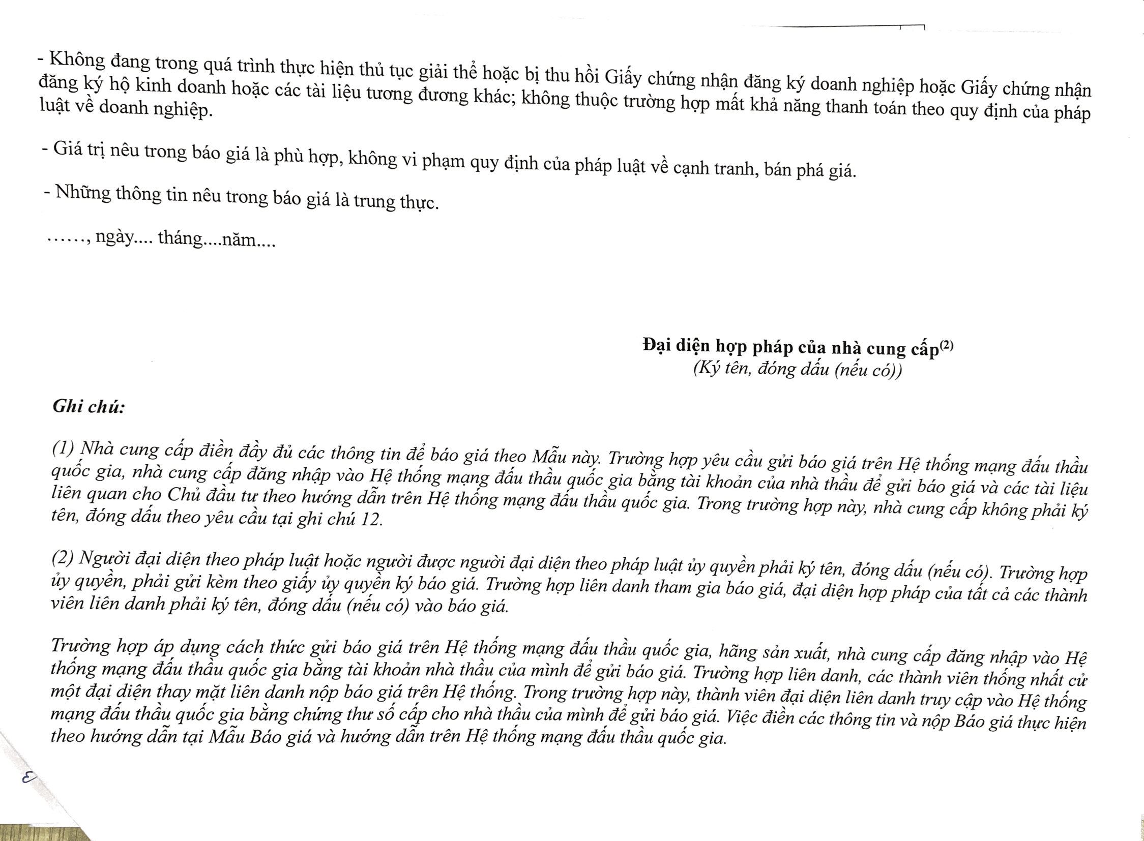 - Cách thức tiếp nhận báo giá: