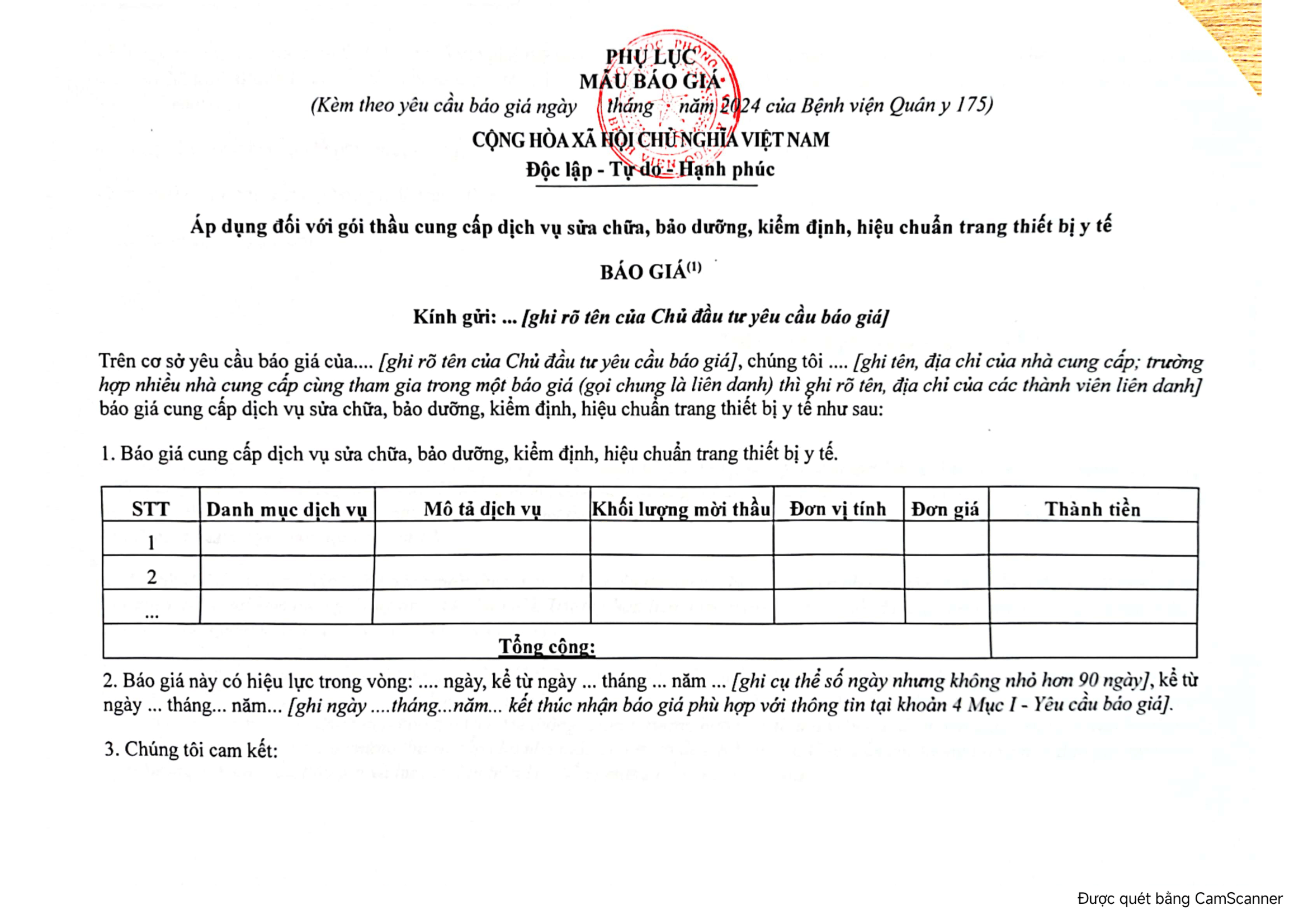 – Nhận trực tiếp tại địa chỉ: Khoa Trang bị, Bệnh viện Quân y 175, 786 Nguyễn Kiệm, P.3, Q. Gò Vấp, TPHCM
