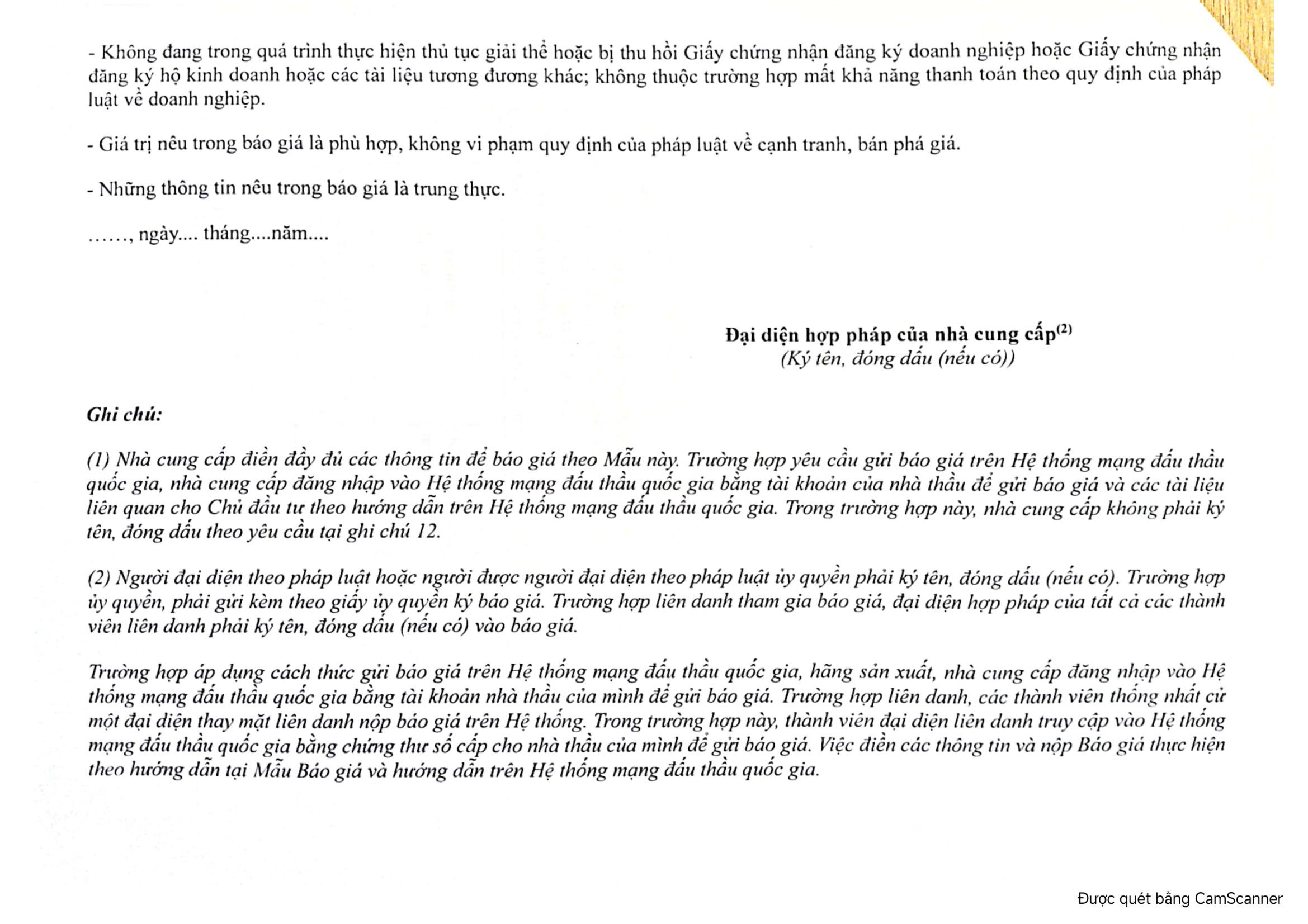 - Cách thức tiếp nhận báo giá: