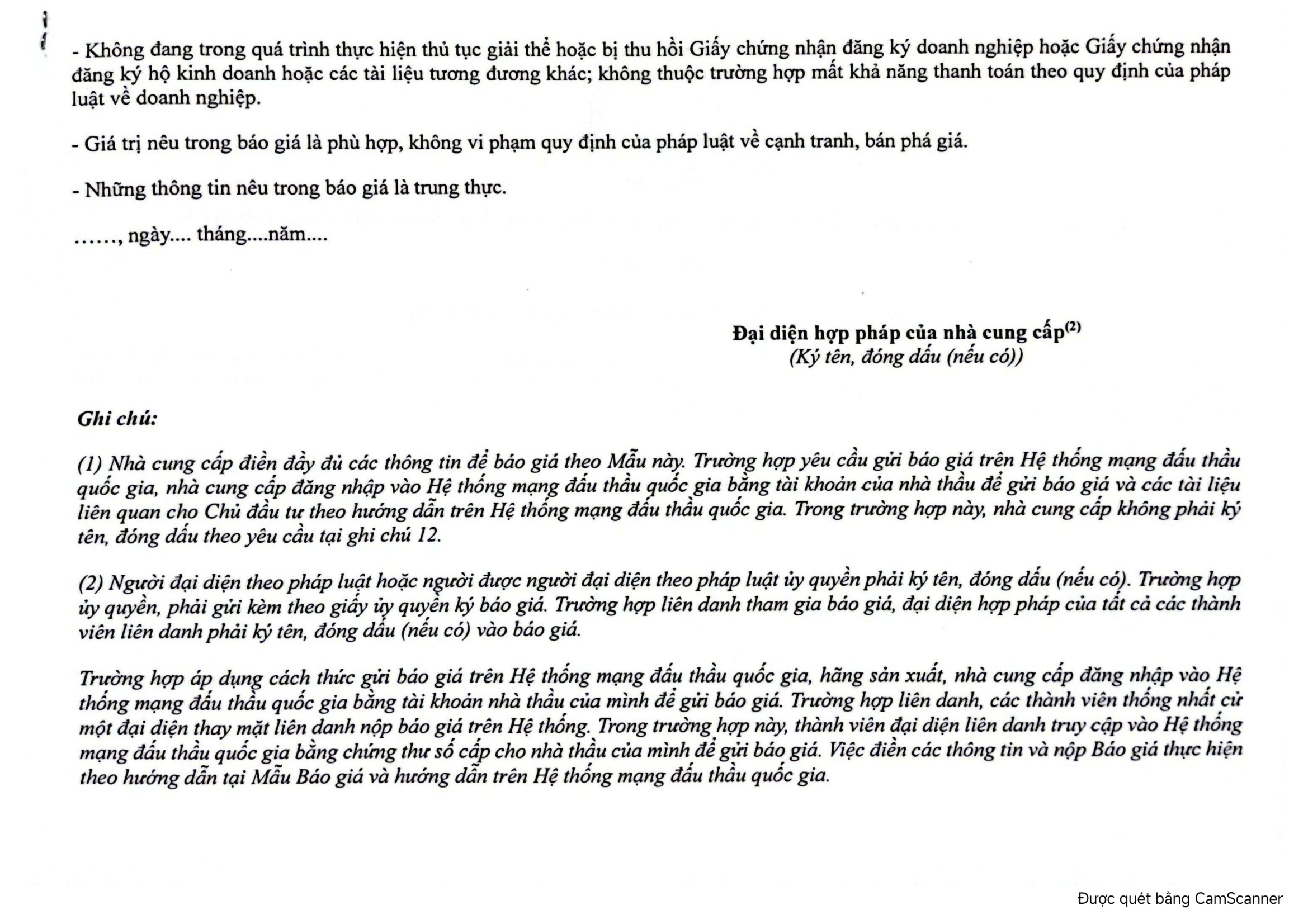 Các báo giá nhận được sau thời điểm nêu trên sẽ không được xem xét.