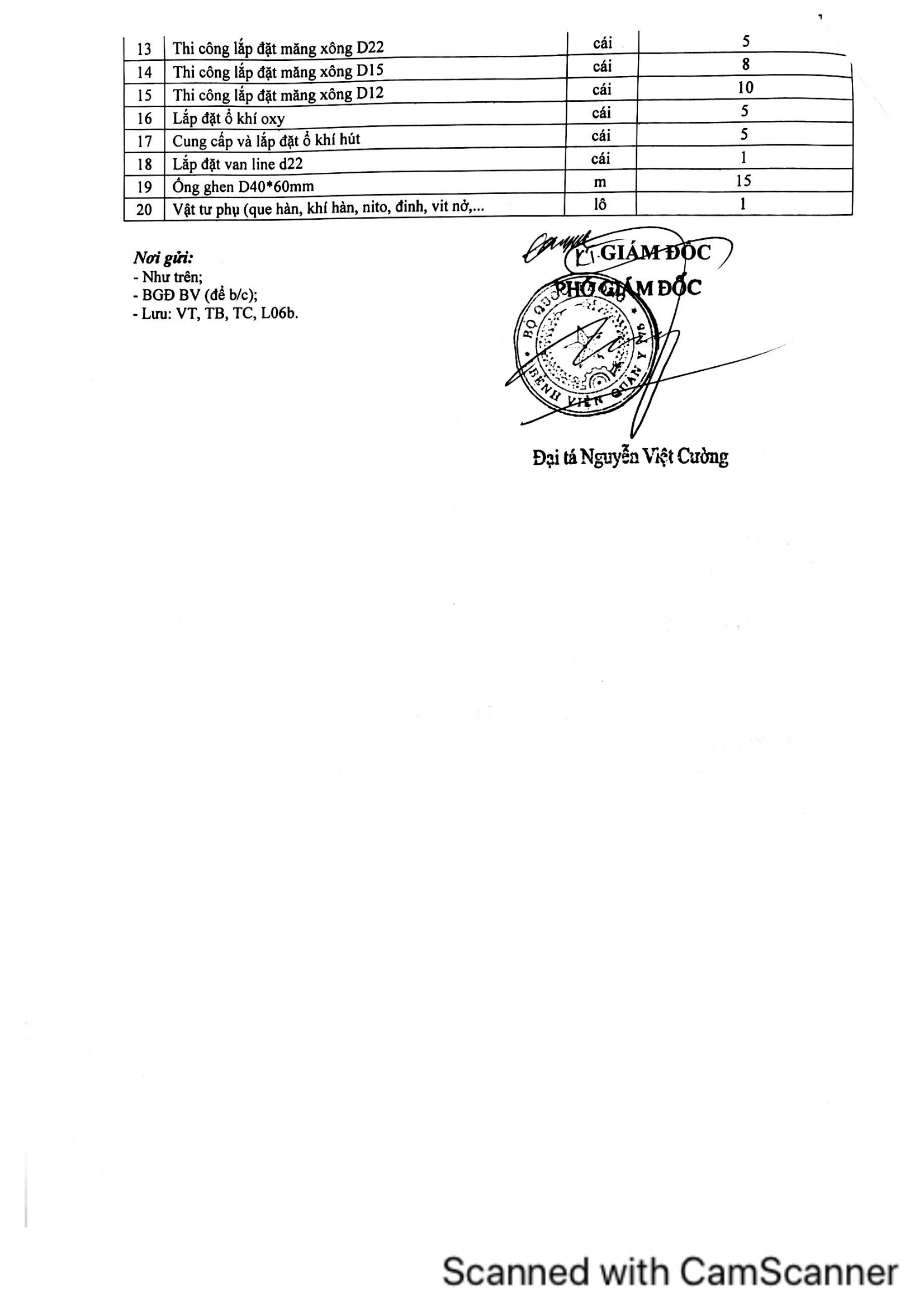 | 16 | Lắp đặt ổ khí oxy | cái | 5 | |