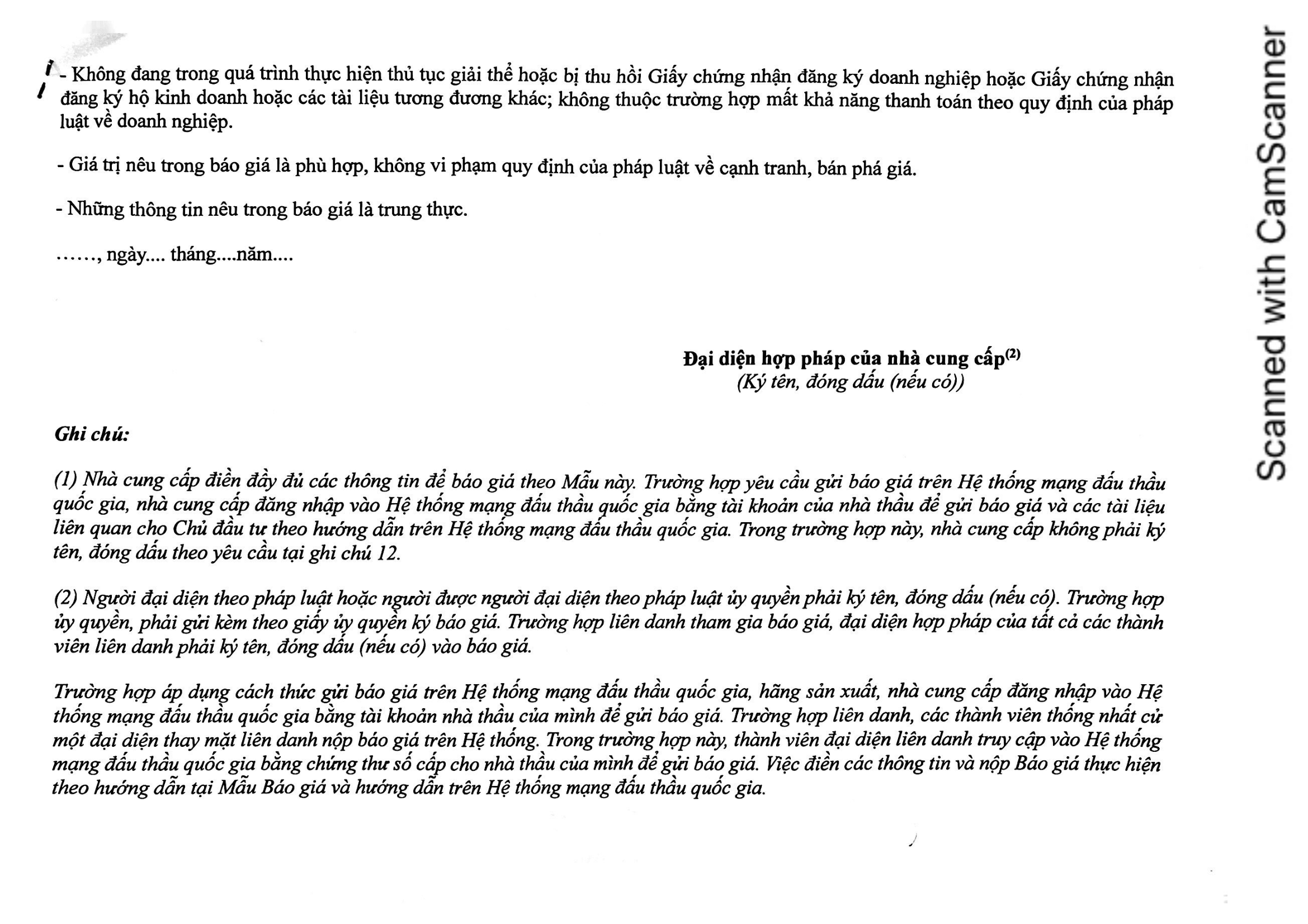 - Cách thức tiếp nhận báo giá: