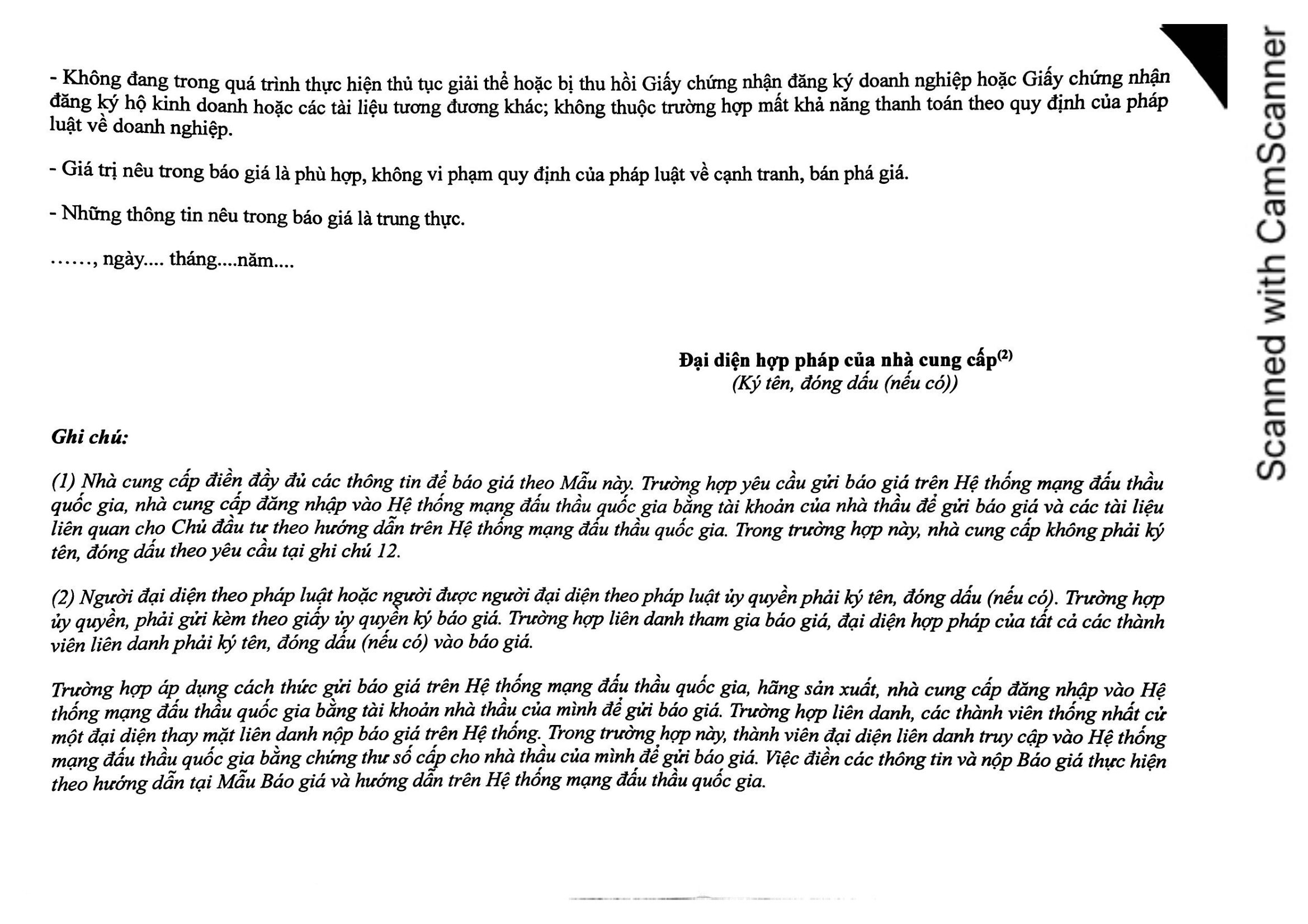 - Cách thức tiếp nhận báo giá: