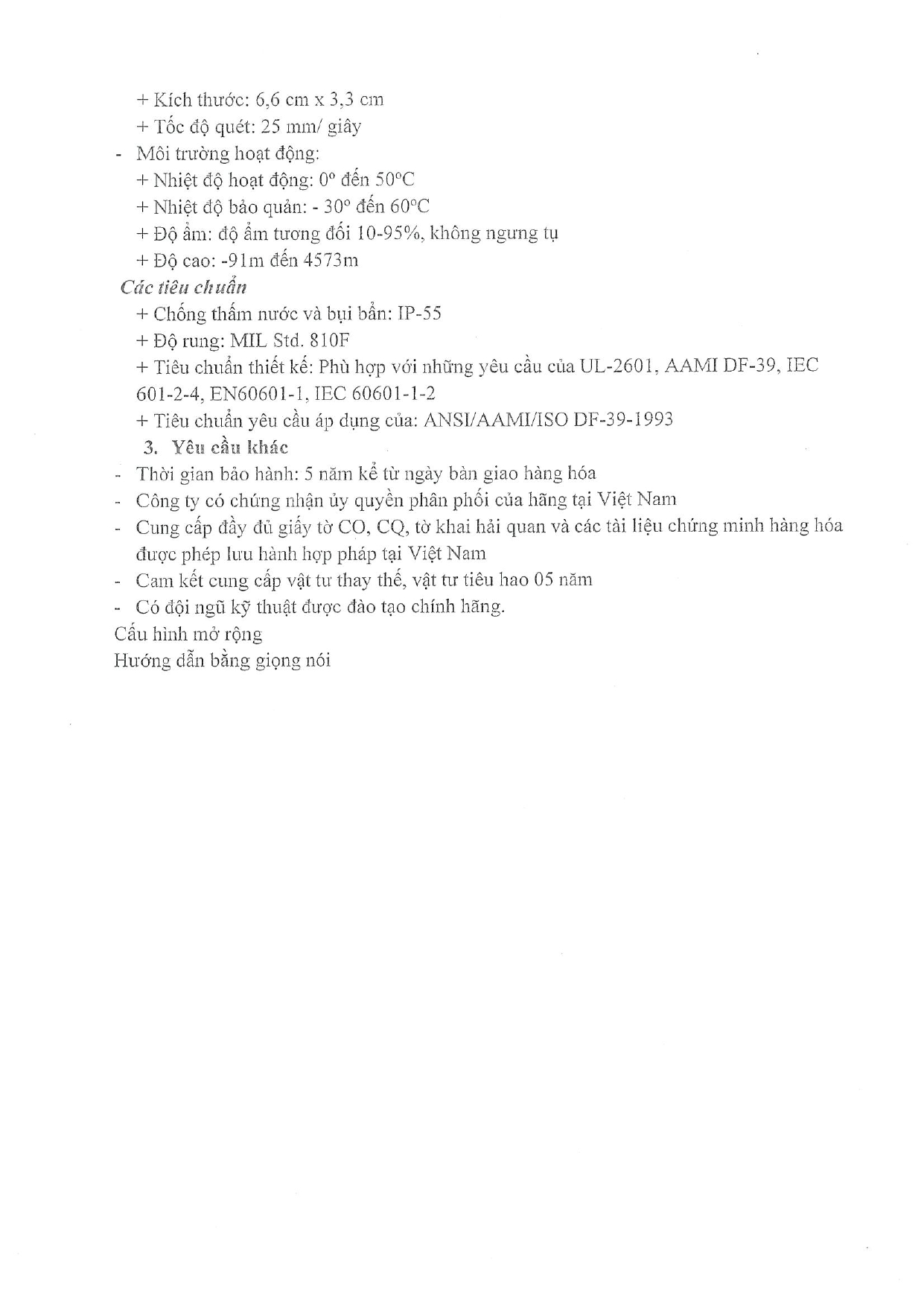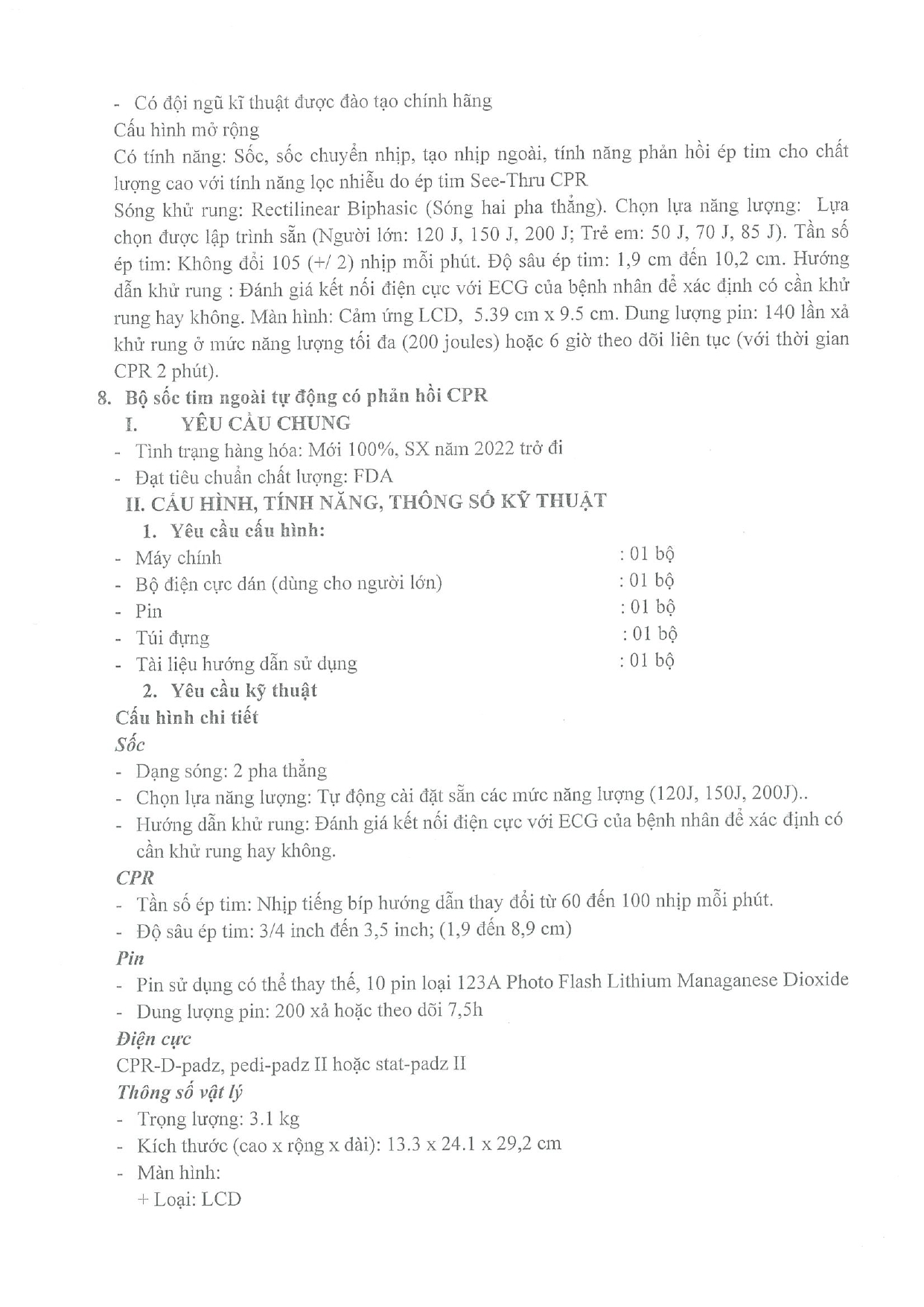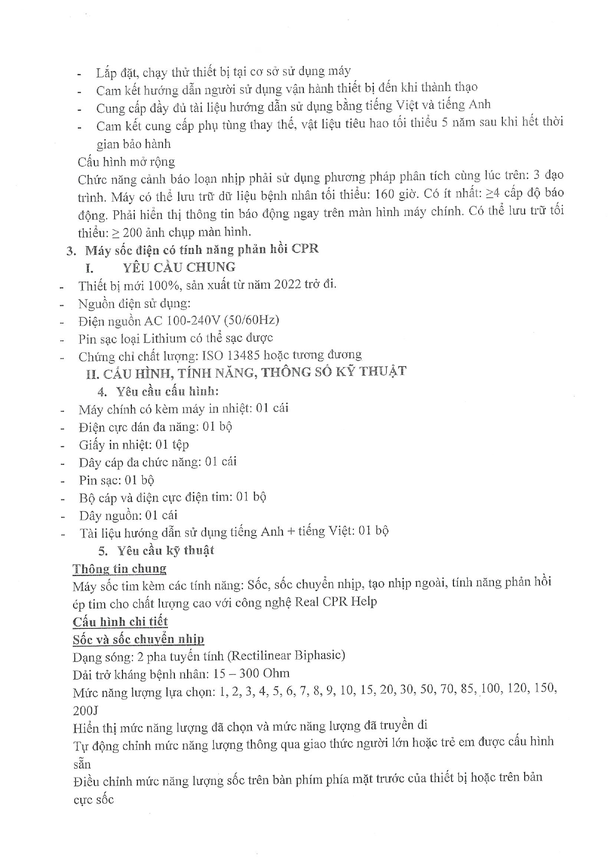 | 3 | Máy sốc điện có tính năng phản hồi CPR | Cái | 1 |