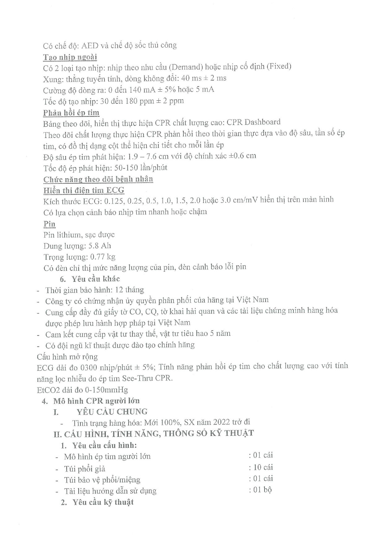| 4 | Mô hình CPR người lớn | bộ | 3 |