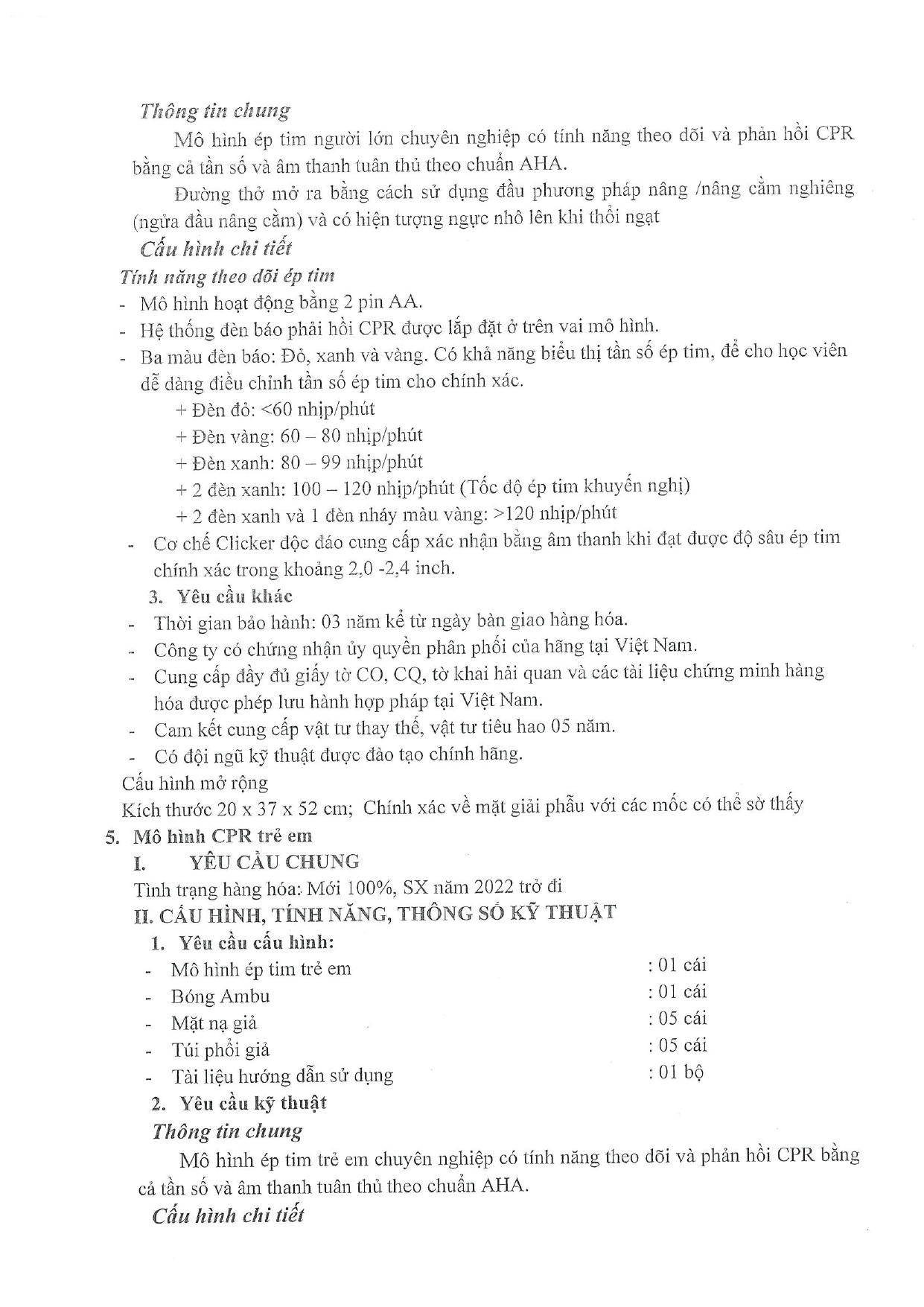 | 5 | Mô hình CPR trẻ em | bộ | 3 |