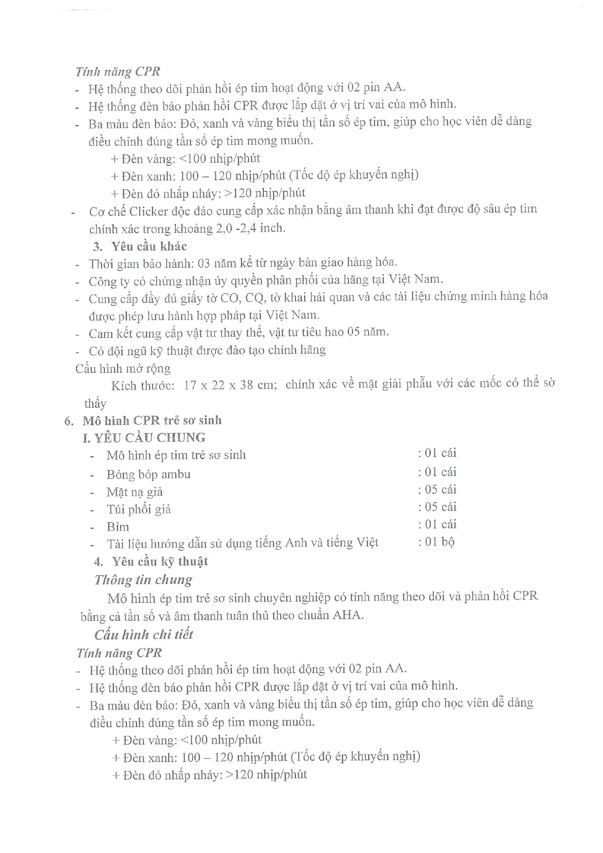| 6 | Mô hình CPR trẻ sơ sinh | bộ | 3 |