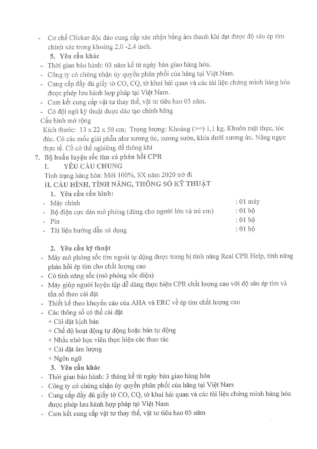 | 7 | Bộ huấn luyện sốc tim có phản hồi CPR | bộ | 6 |