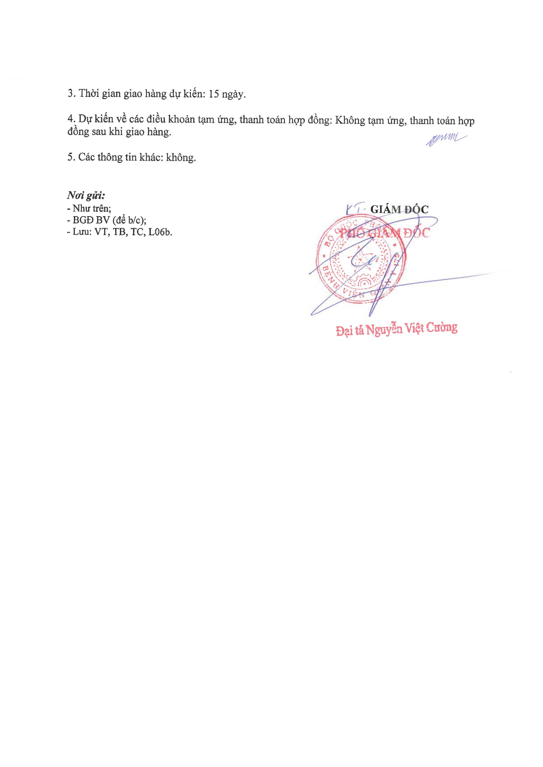 2. Thời gian giao hàng dự kiến: 15 ngày.